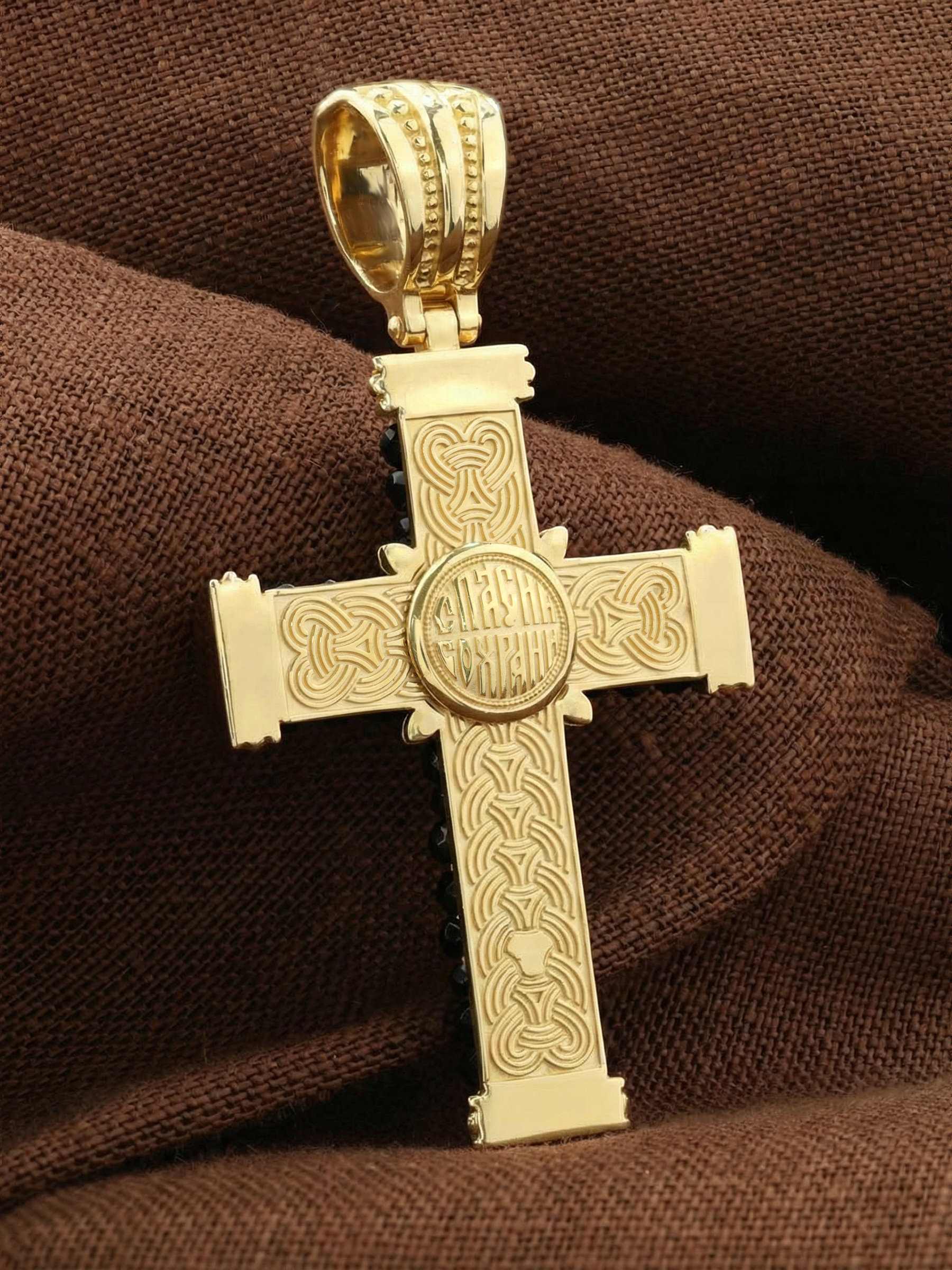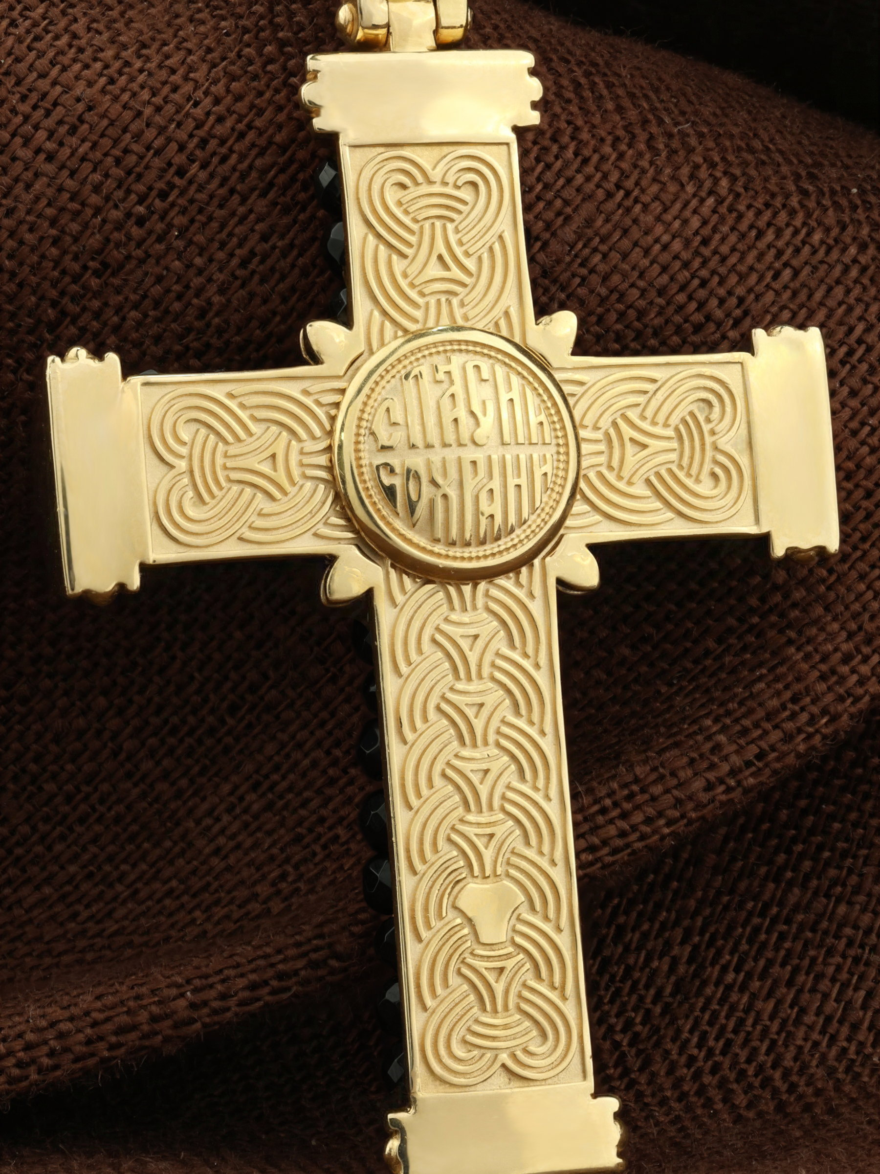 В центрально части оборотной стороны креста написана молитва: «Спаси и сохрани».