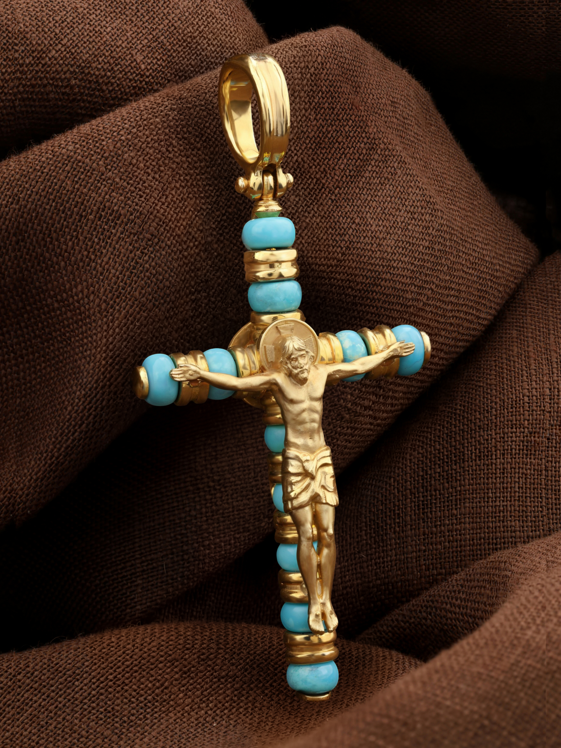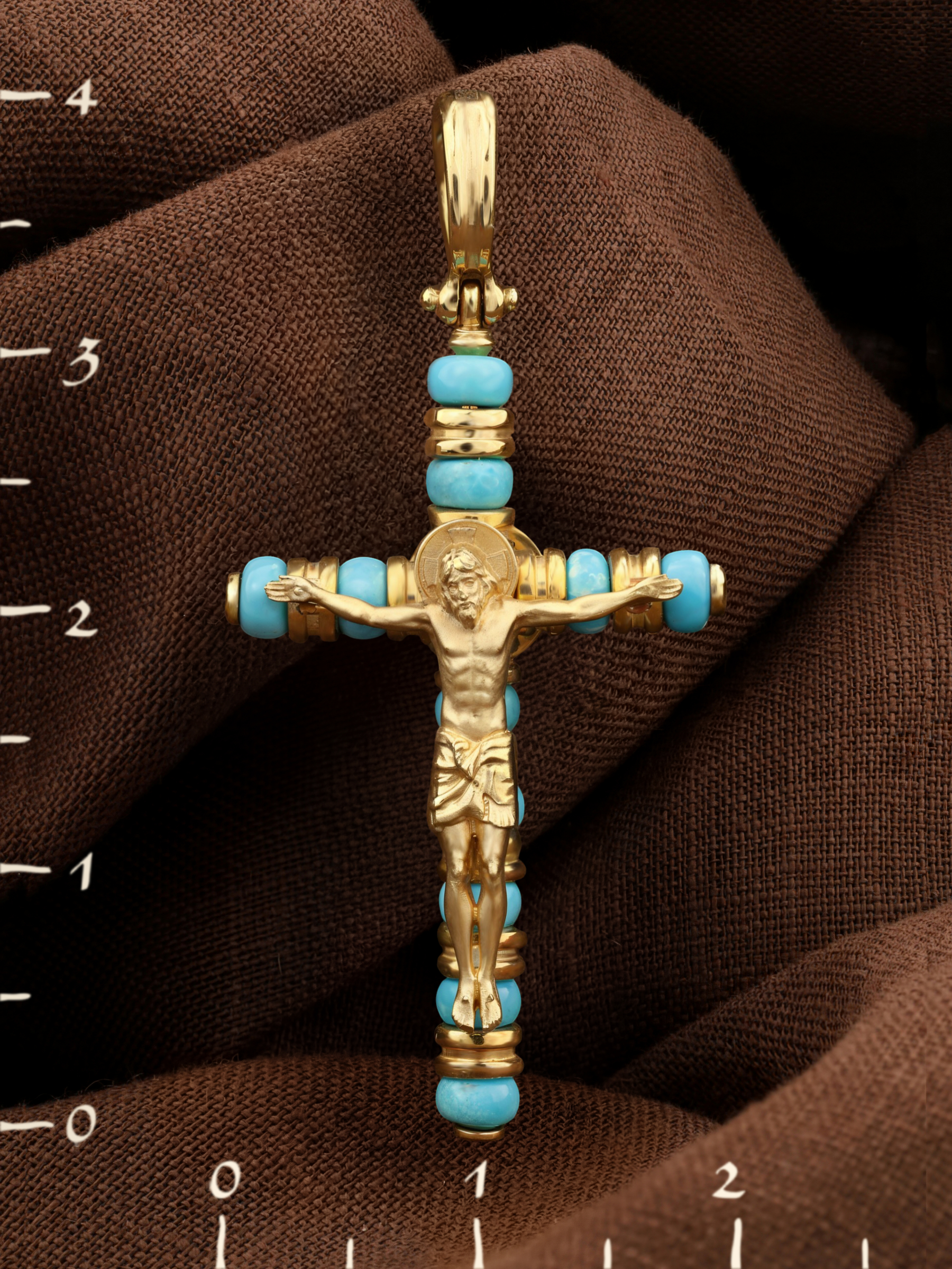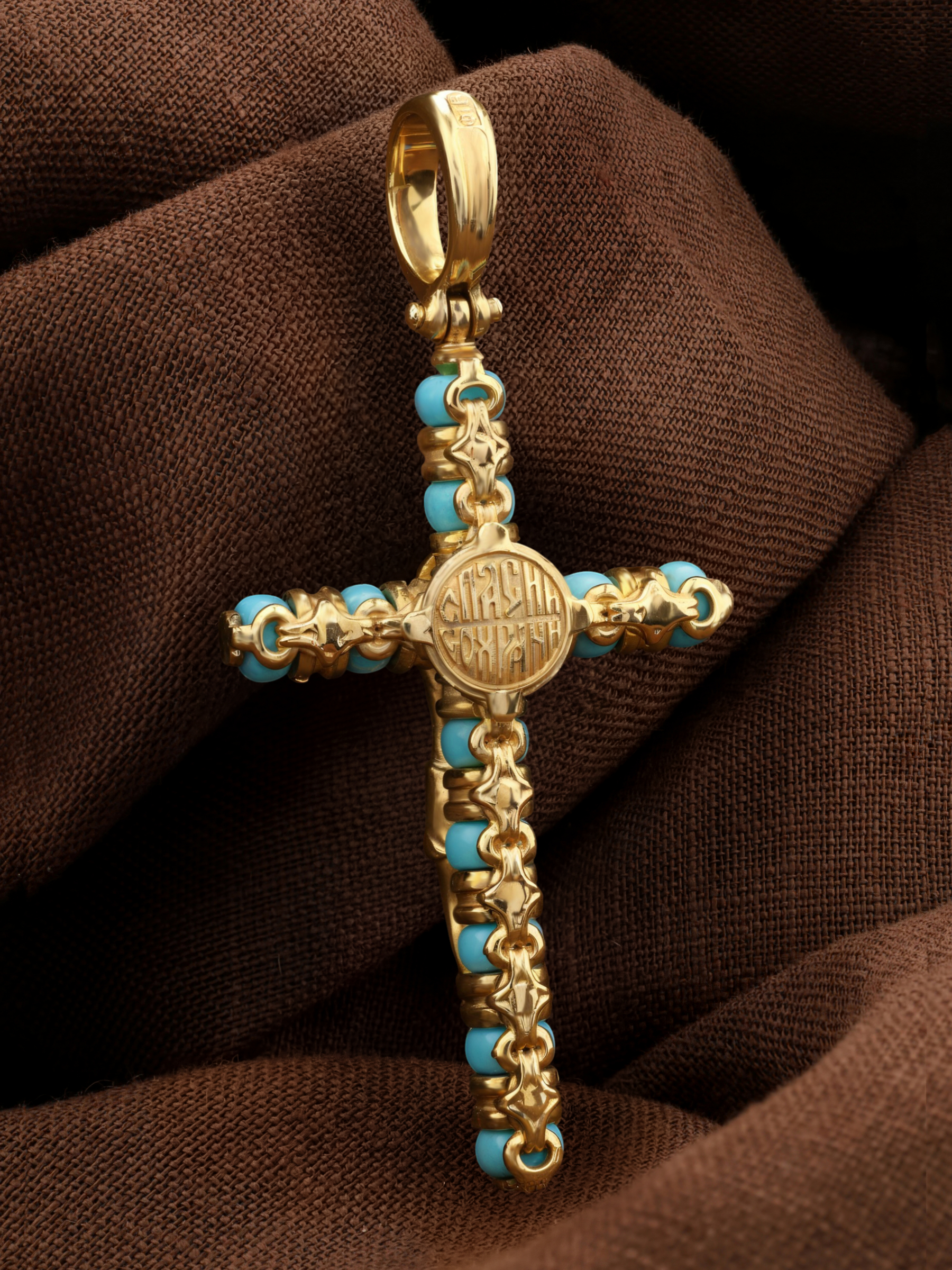 Крест из лимонного золота c бирюзой