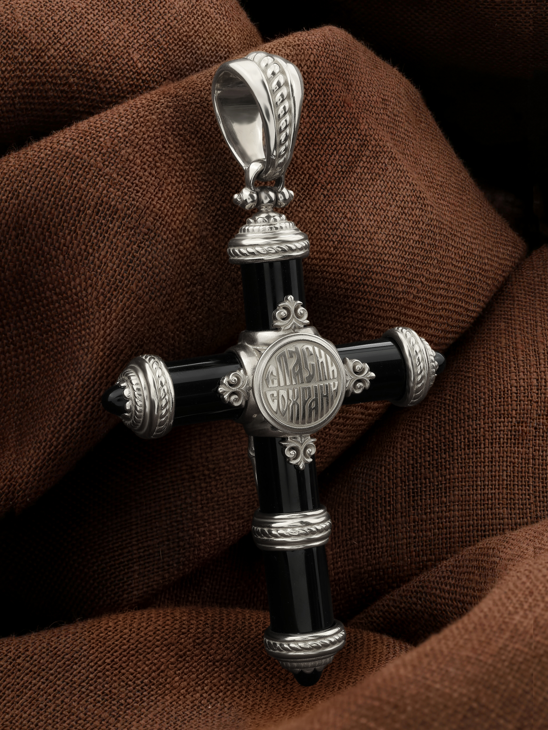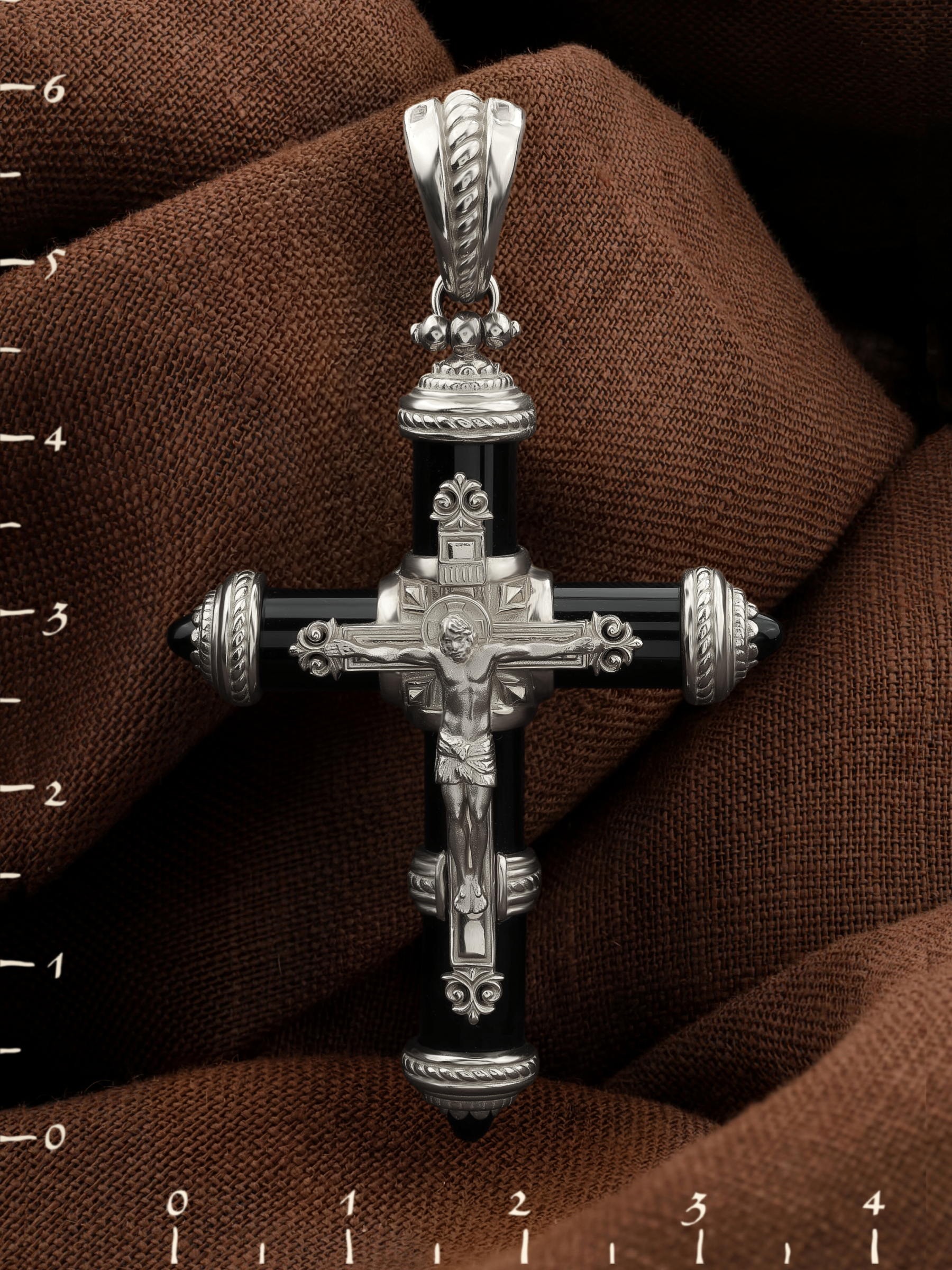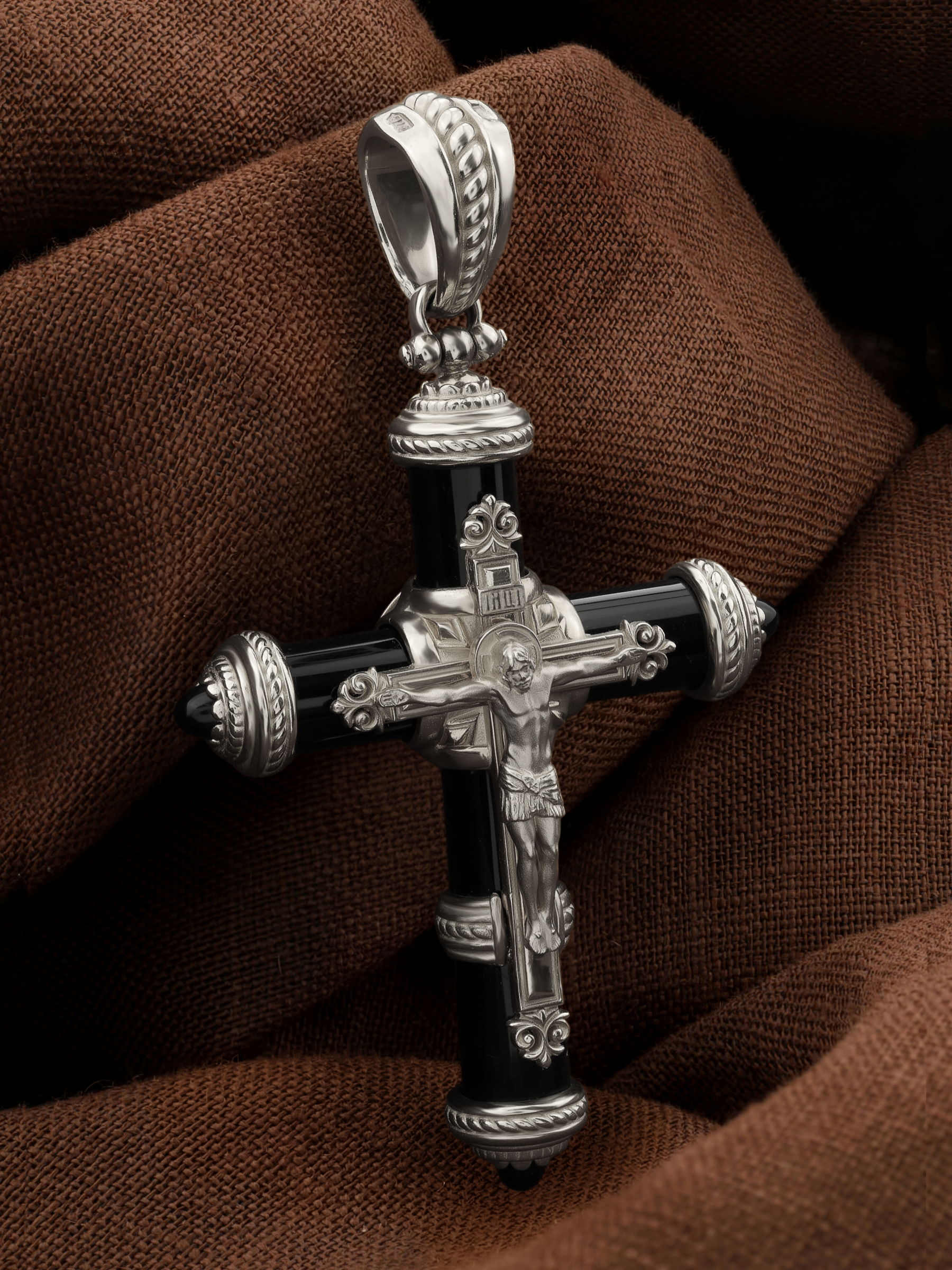 Крест из белого золота c ониксом