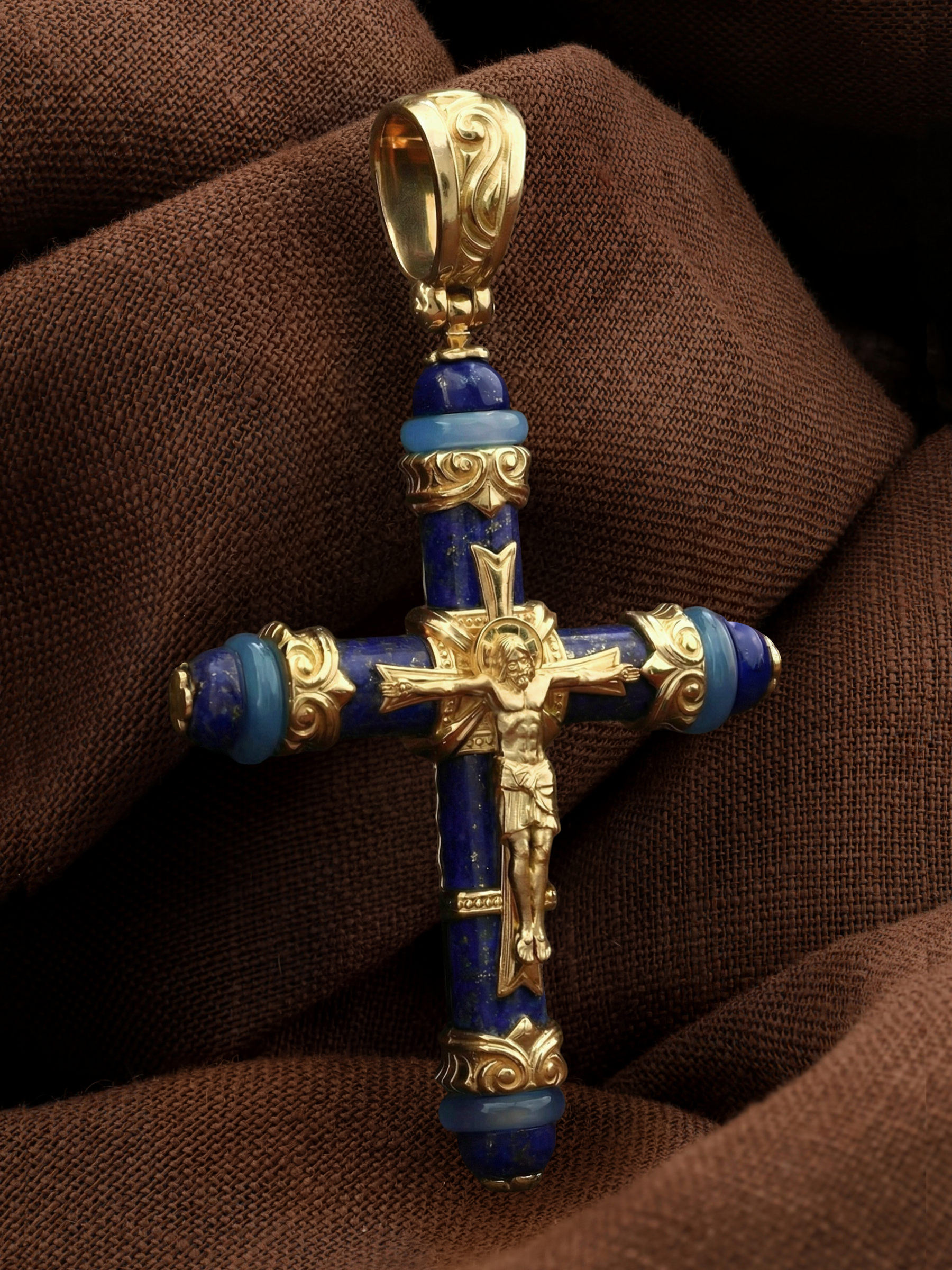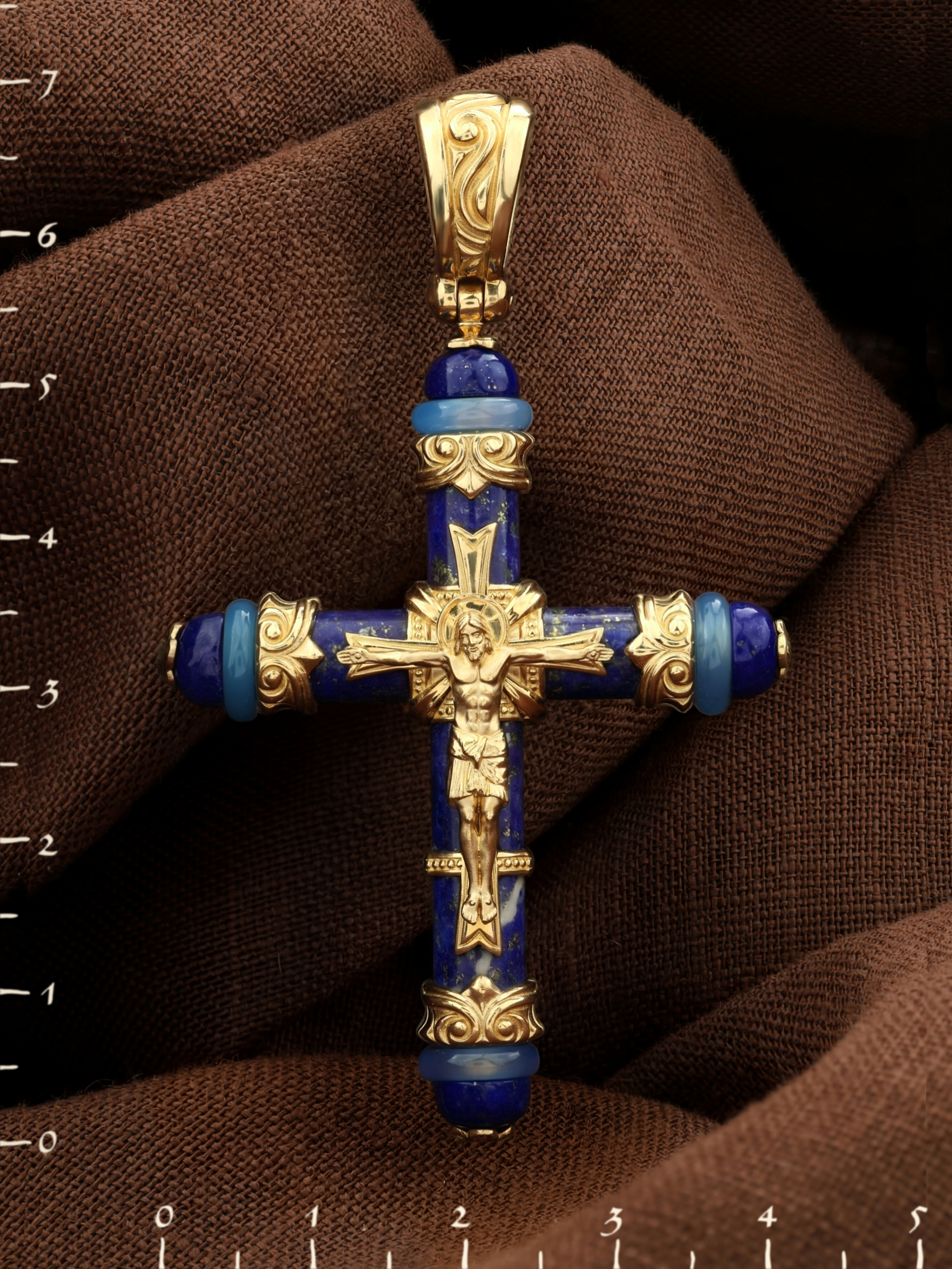 Крест из лимонного золота c агатом и лазуритом