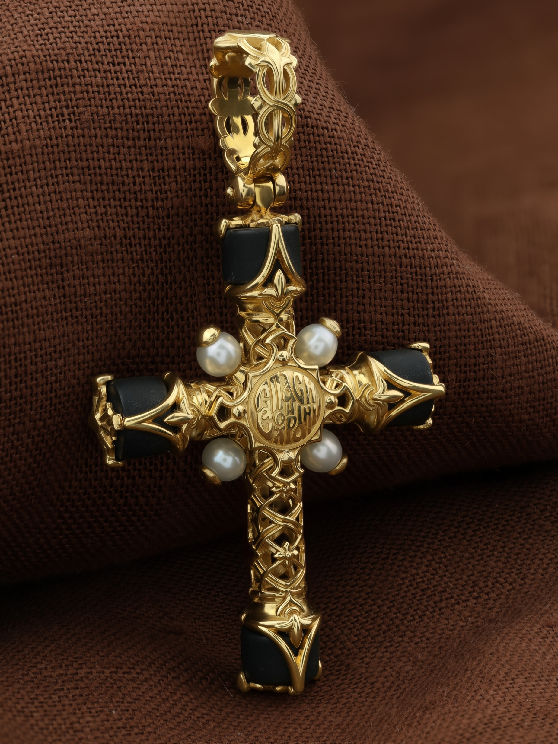 В центральной части оборотной стороны креста помещена молитва: «Спаси и сохрани».