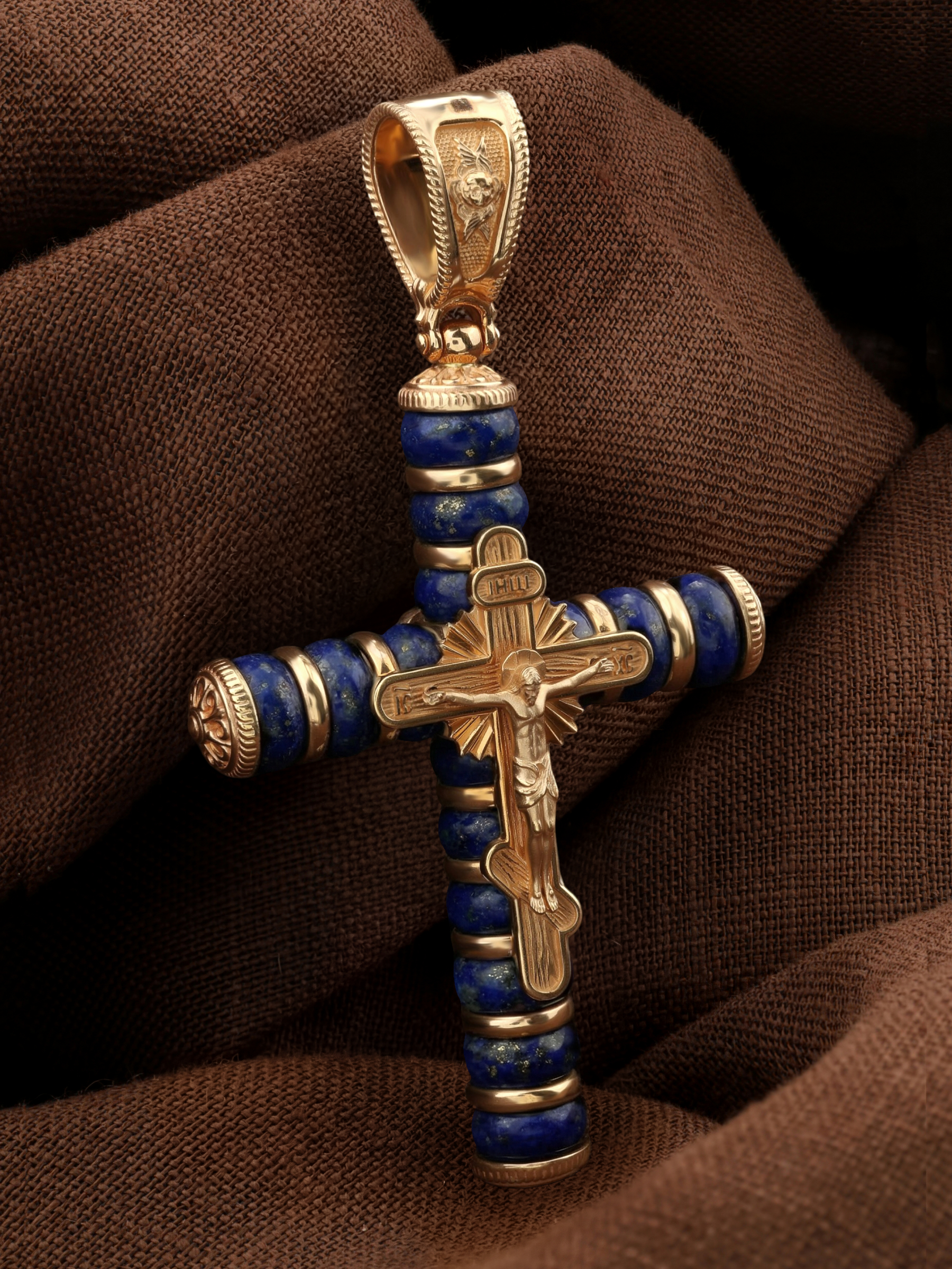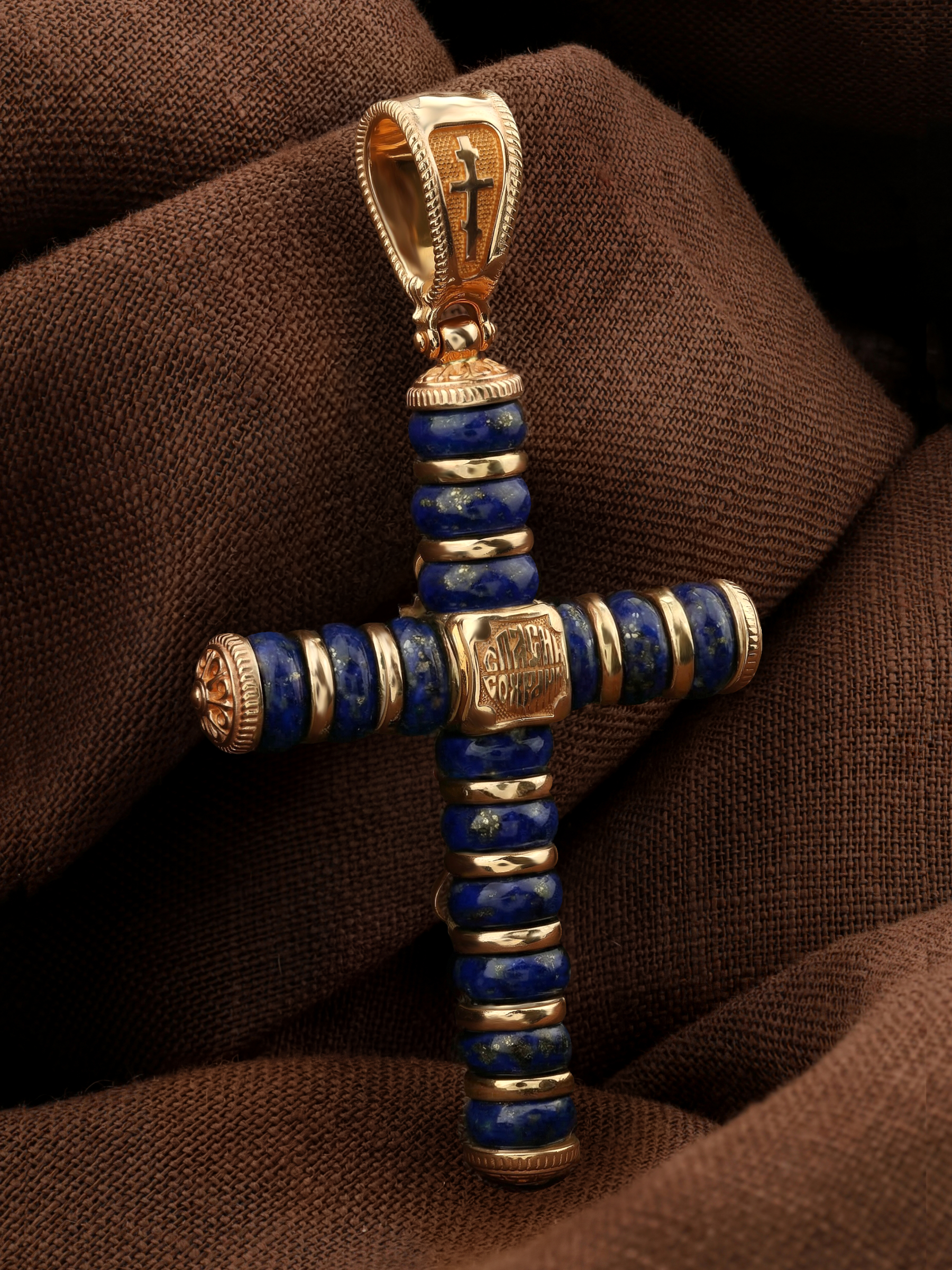 Крест из золота c лазуритом