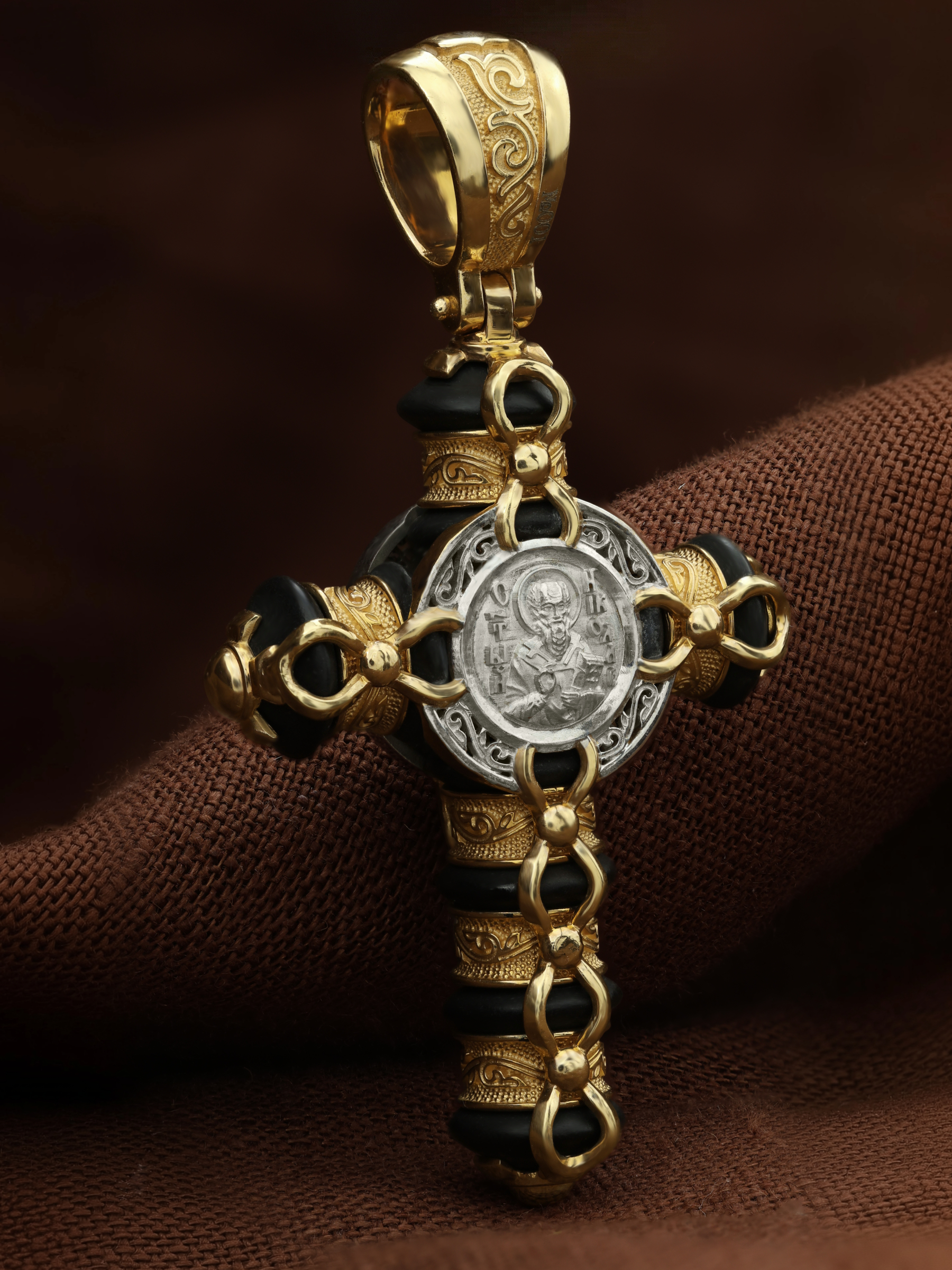 Крест из лимонного золота c ониксом