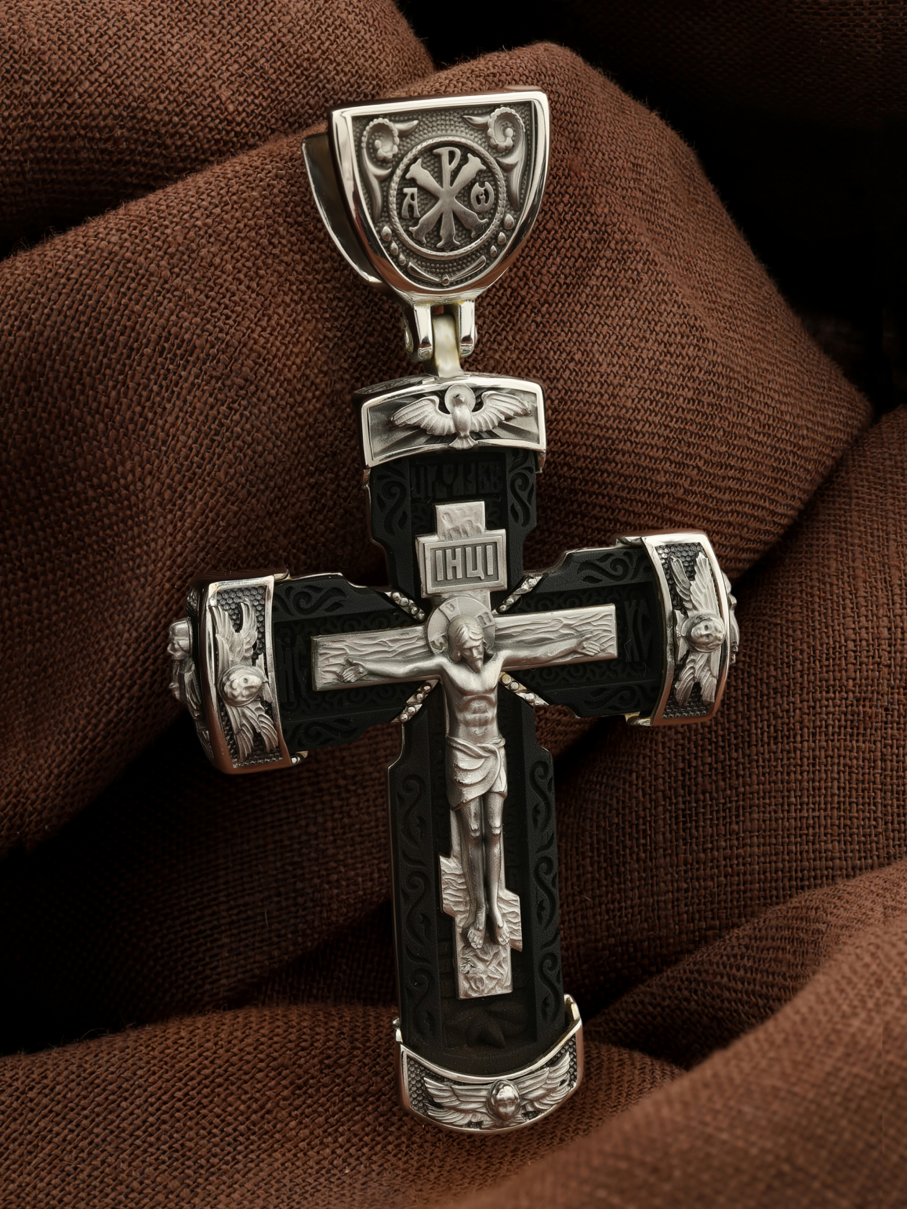Крест из белого золота c эбеновым деревом