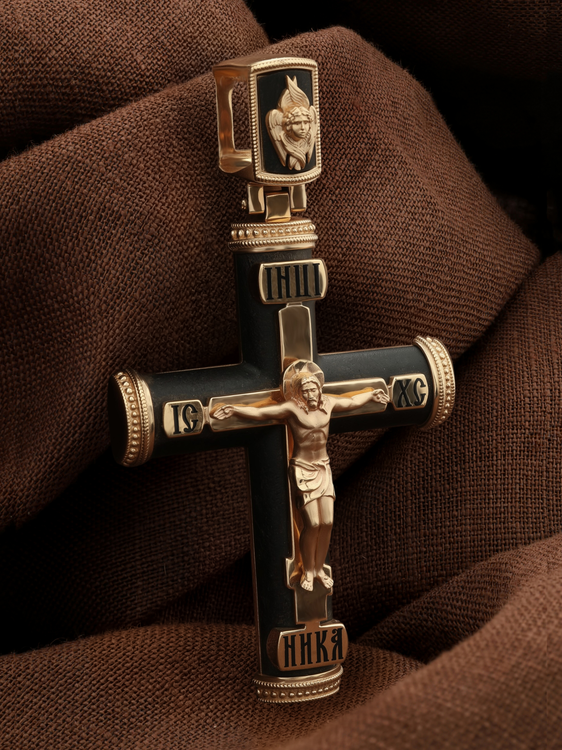 Крест из золота c эмалью и эбеновым деревом