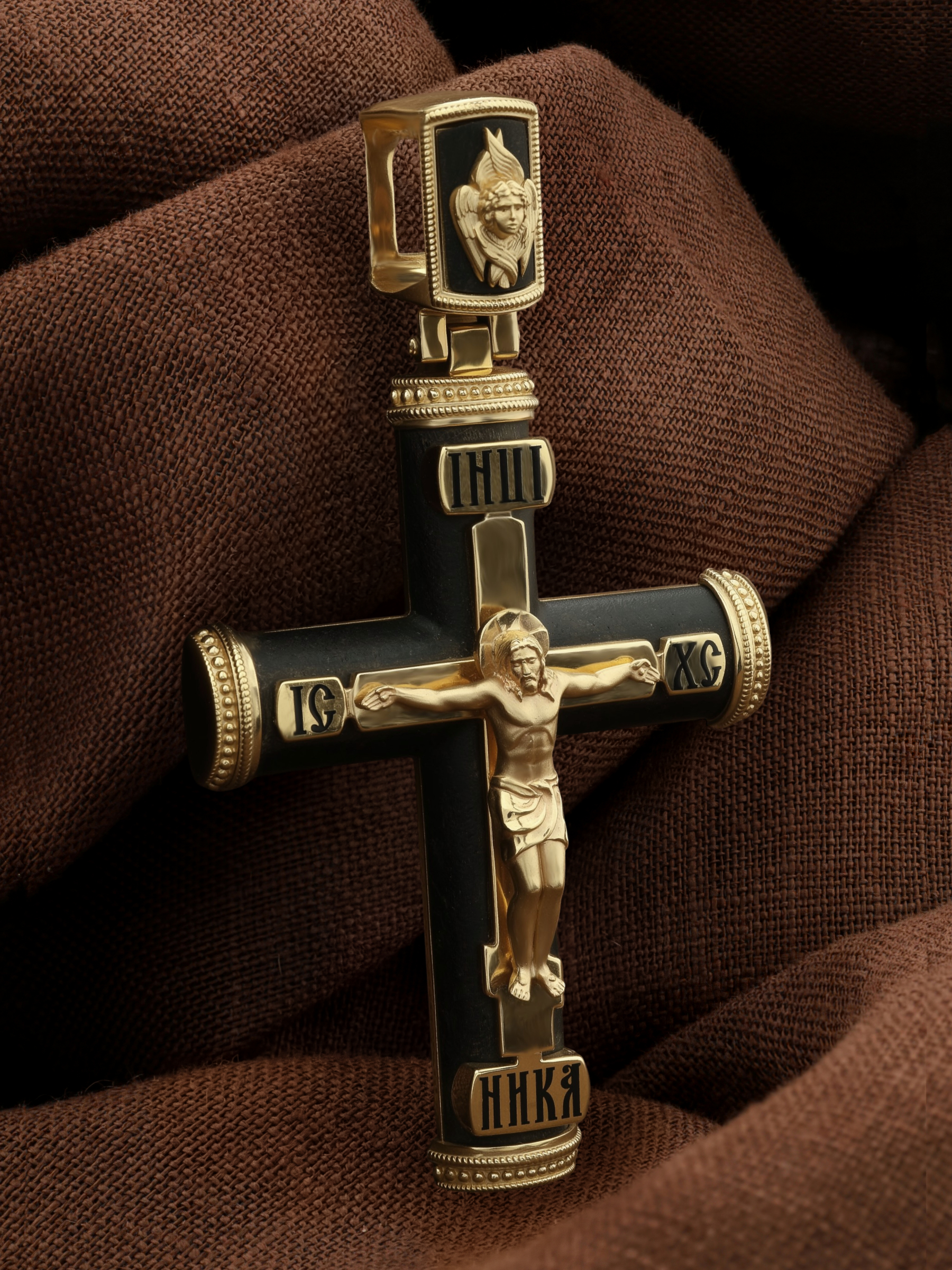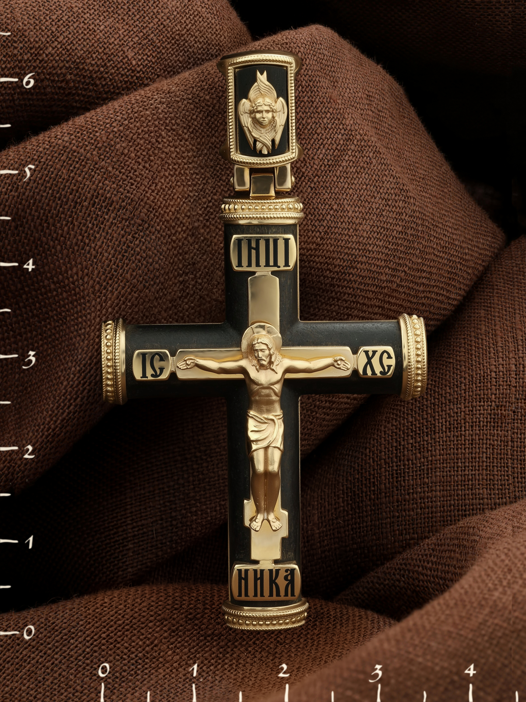 Крест из лимонного золота c эмалью и эбеновым деревом