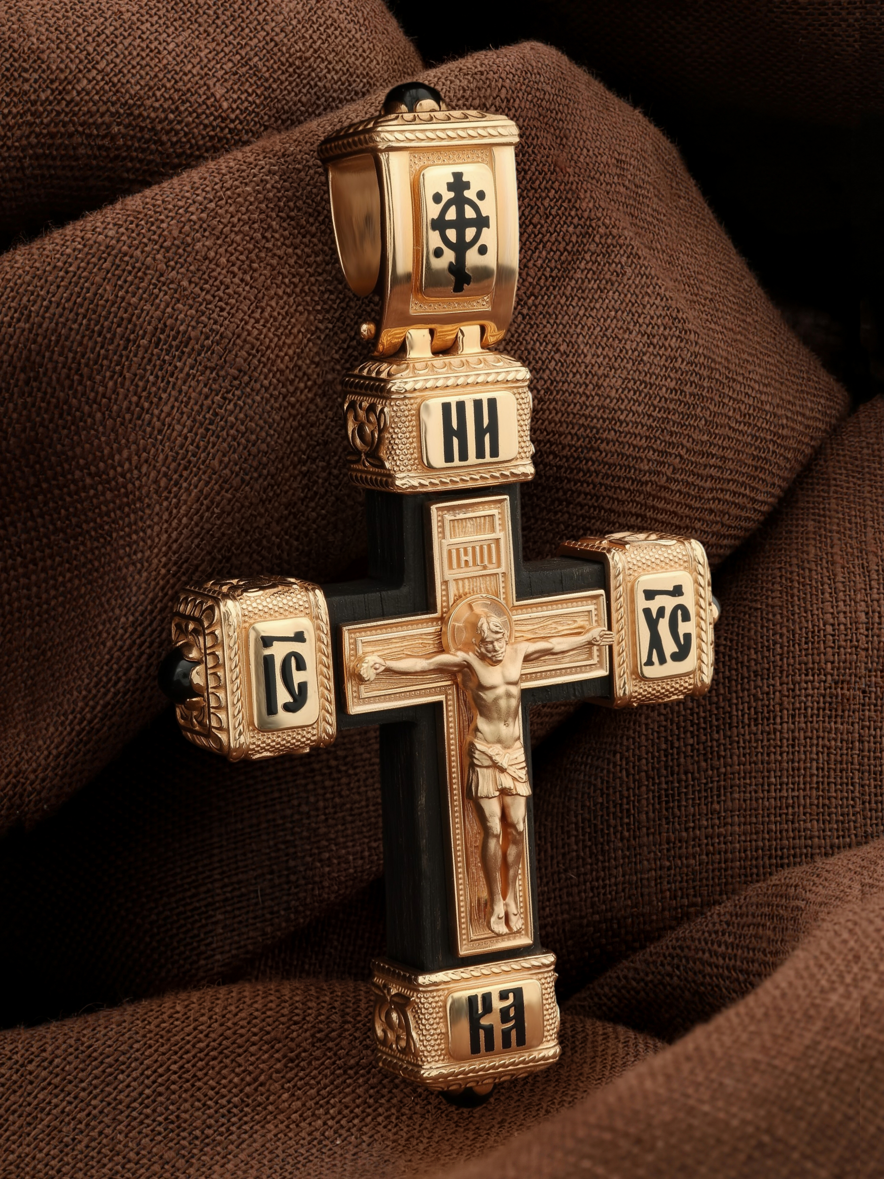 Крест из золота c эмалью, ониксом и эбеновым деревом
