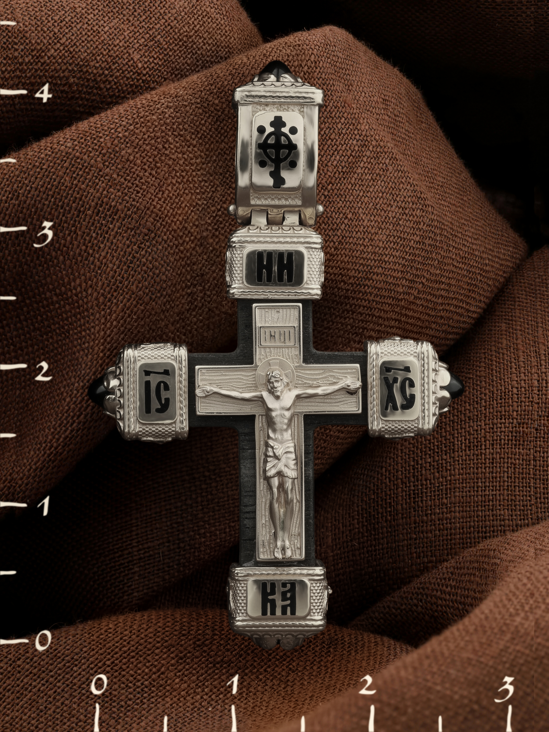 Крест из белого золота c эмалью, ониксом и эбеновым деревом
