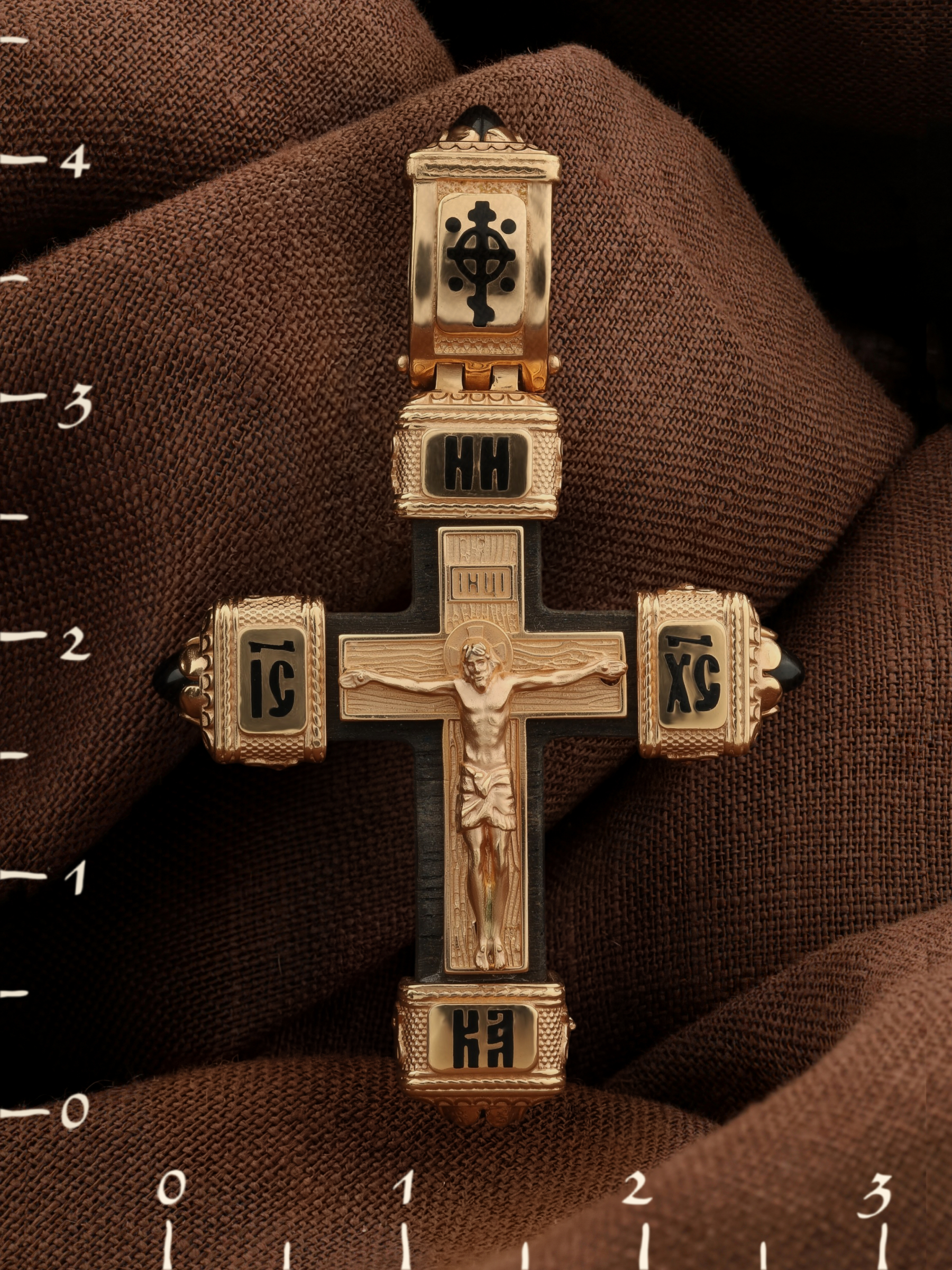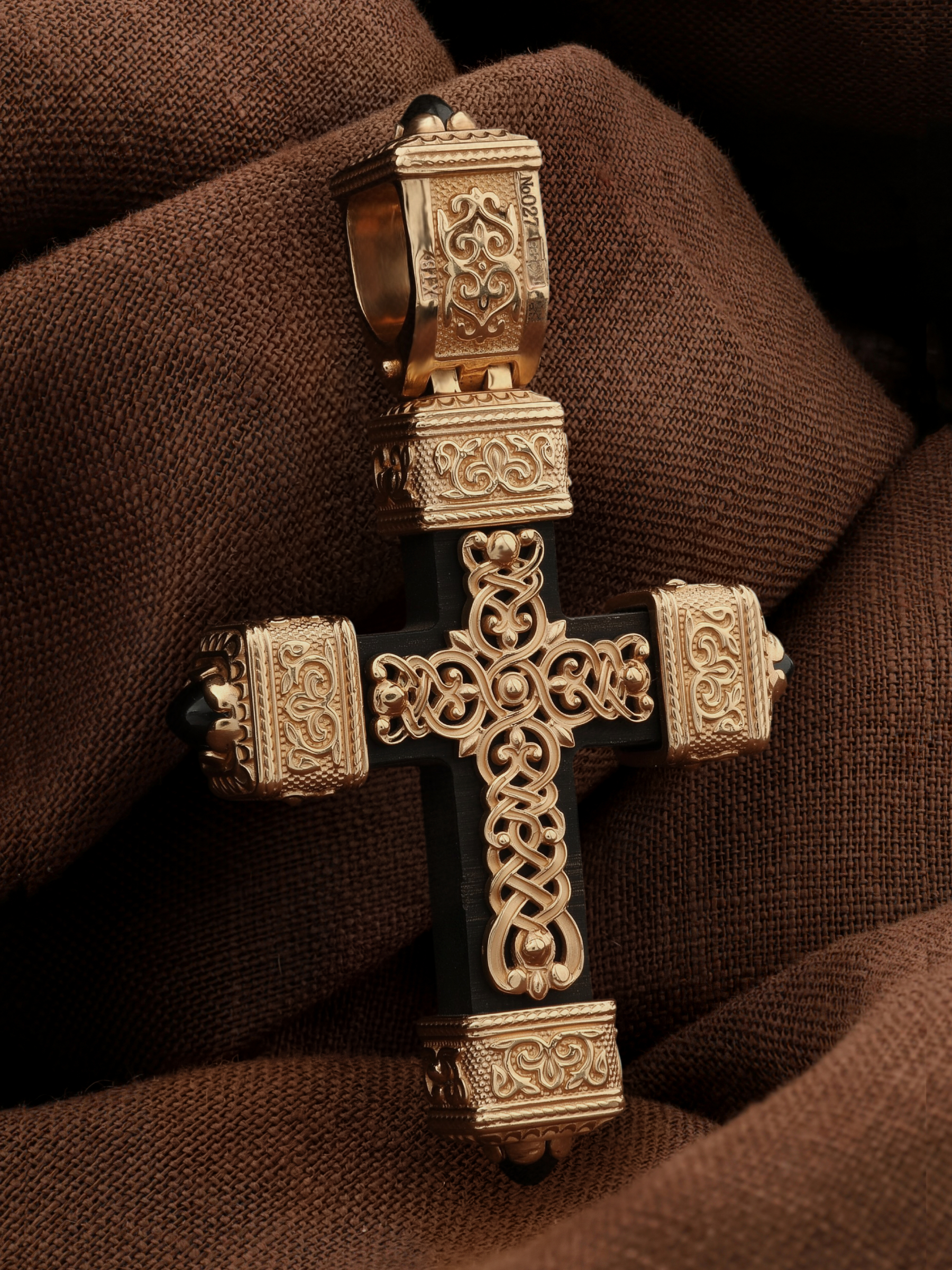 Крест из золота c эмалью, ониксом и эбеновым деревом