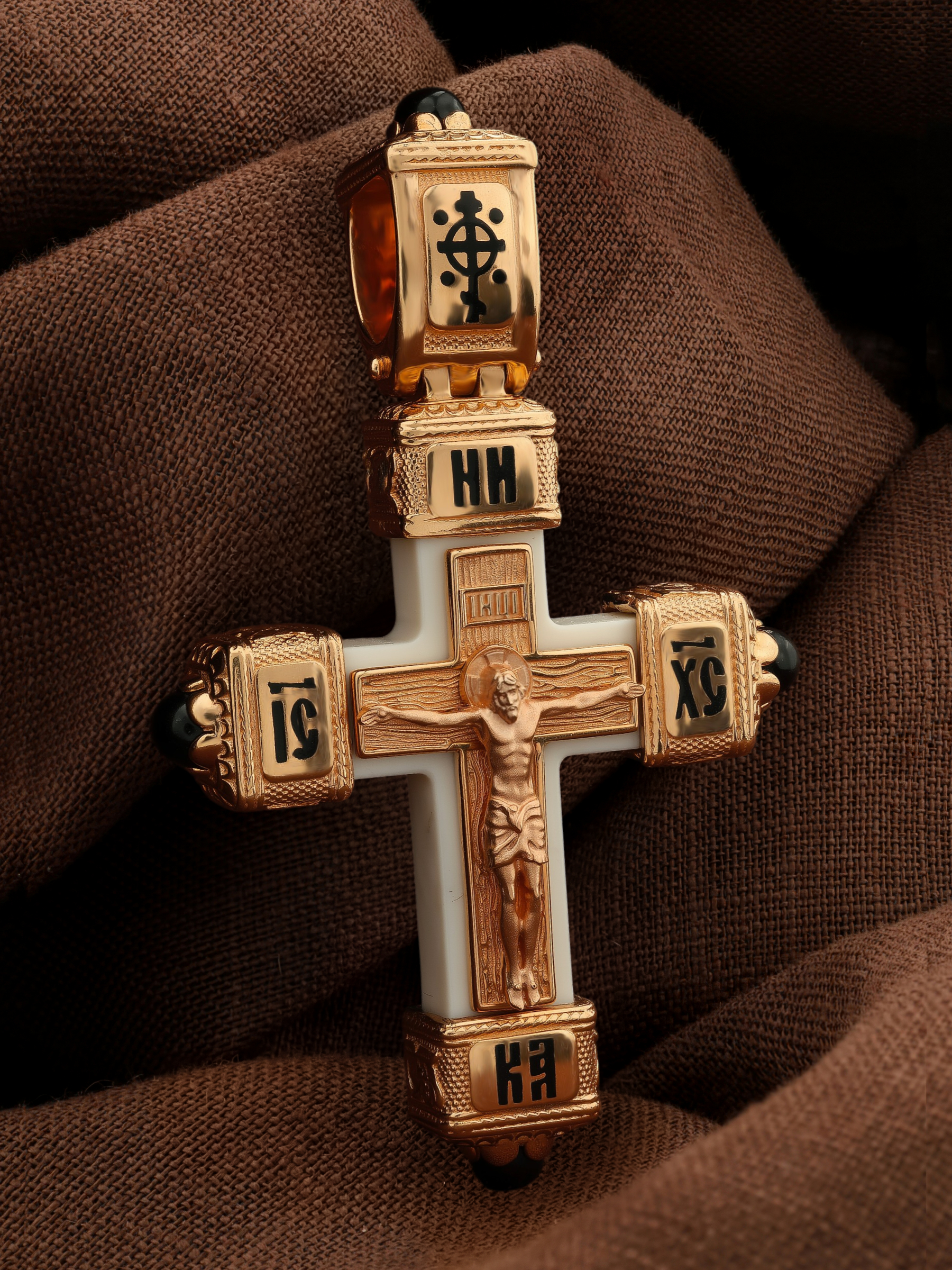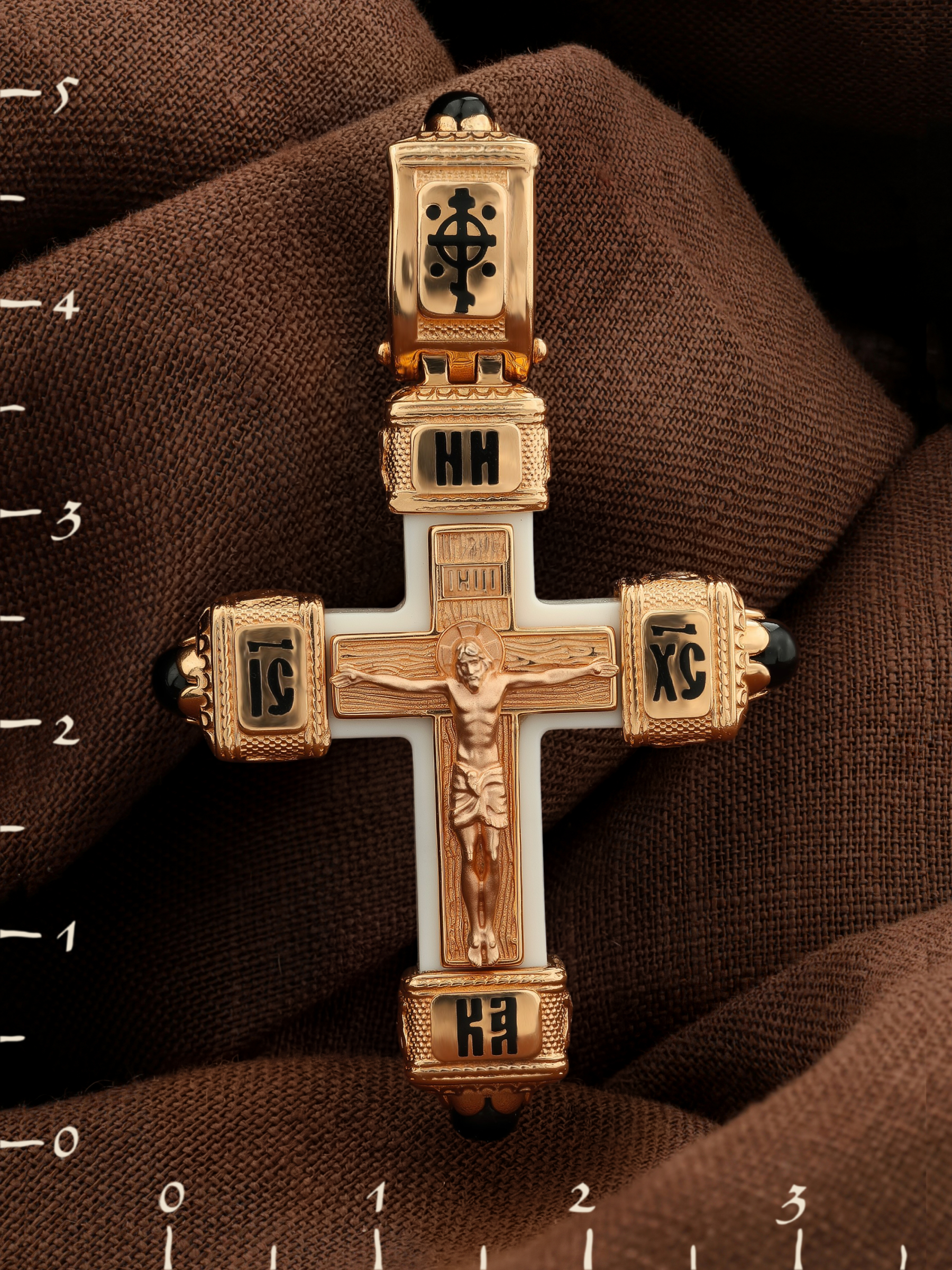 Крест из золота c эмалью, ониксом и бивнем мамонта