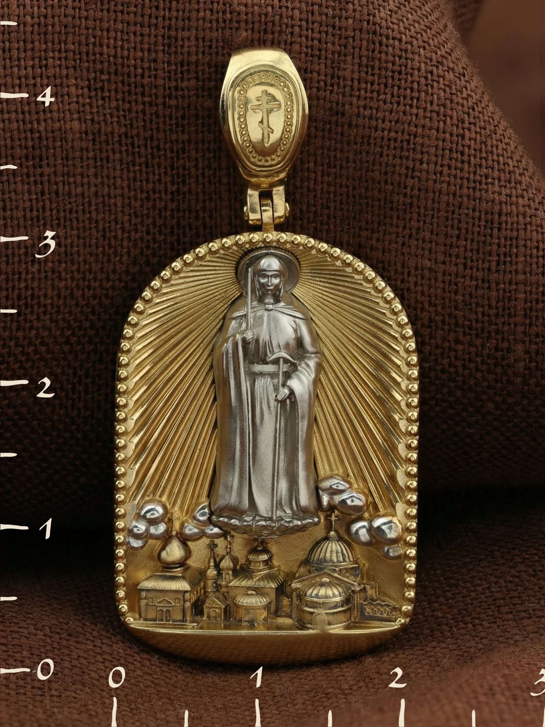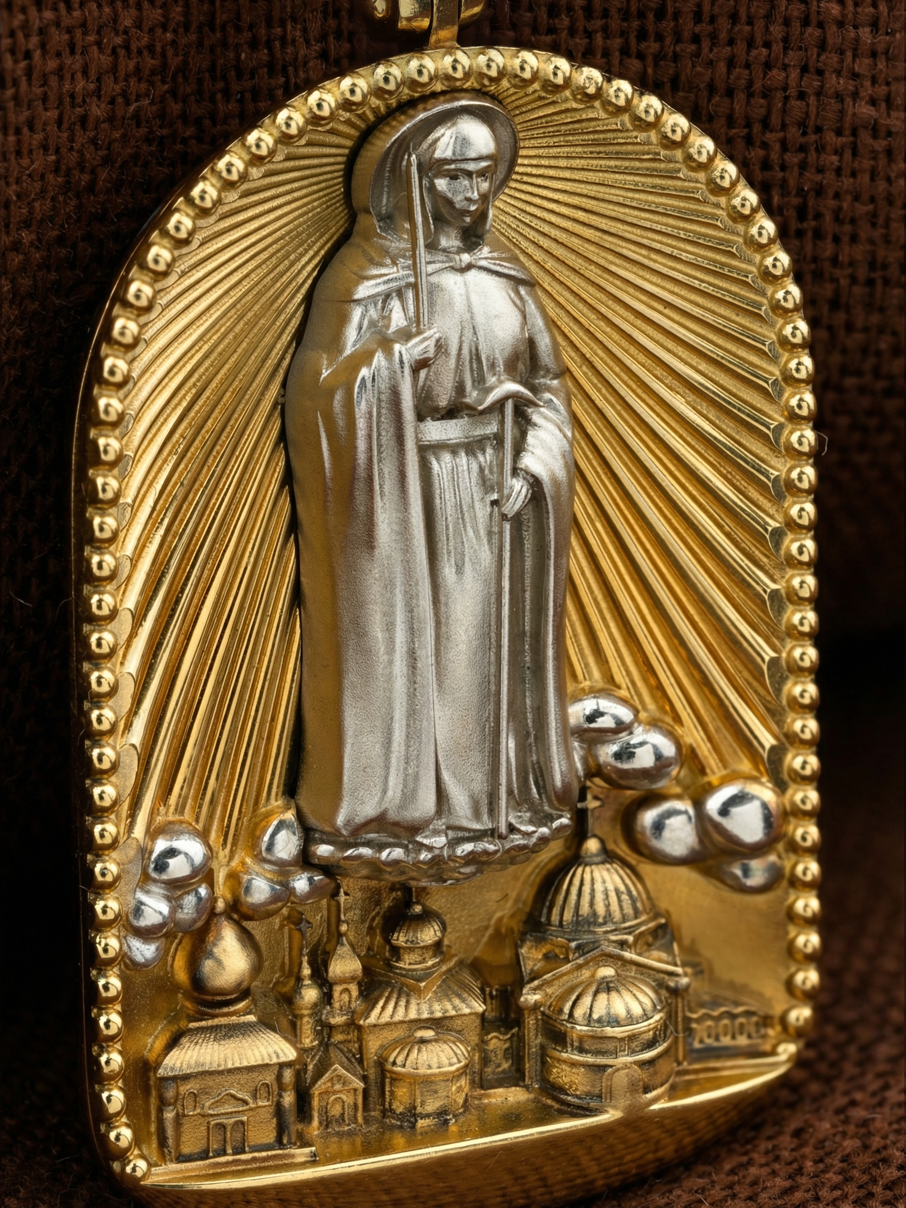 На лицевой стороне образка изображена икона Божией Матери «Свеча Неугасимая Огня Невещественного». Икона изображает Пресвятую Богородицу с посохом в левой руке и зажженной свечой — в правой. Находится икона он в Свято-Алексеевском монастыре г. Углича, основанном Митрополитом Алексием в 1371-м году. По преданию, Божия Матерь явилась настоятелю монастыря Евангелу с посохом и свечой. Это было примерно в 1864 году когда и была написана икона. До 1894 года она пребывала в кладовой обители около тридцати лет. 23 июня же того года из Петербурга прибыл в обитель один больной купец. Явившись к настоятелю, он подробно рассказал о своей болезни и о том, что ему явилась во сне Божия Матерь и повелела отправиться в Углич, где находится Её икона, и помолиться перед ней, обещая ему исцеление. Настоятель велел разыскать эту икону. Его повеление было исполнено, и икона с великим торжеством была перенесена в Успенский храм монастыря. Когда больной купец помолился перед ней, то в скором времени совершенно выздоровел. В благодарность за полученное исцеление он обложил икону серебряной вызолоченной ризой. И таких исцелений и утешений зафиксировано немало, икона помогает всем, «с верою к ней притекающим». К чудотворному образу Божией Матери отовсюду стекаются люди и по молитвам заступницы получают помощь и утешение.
