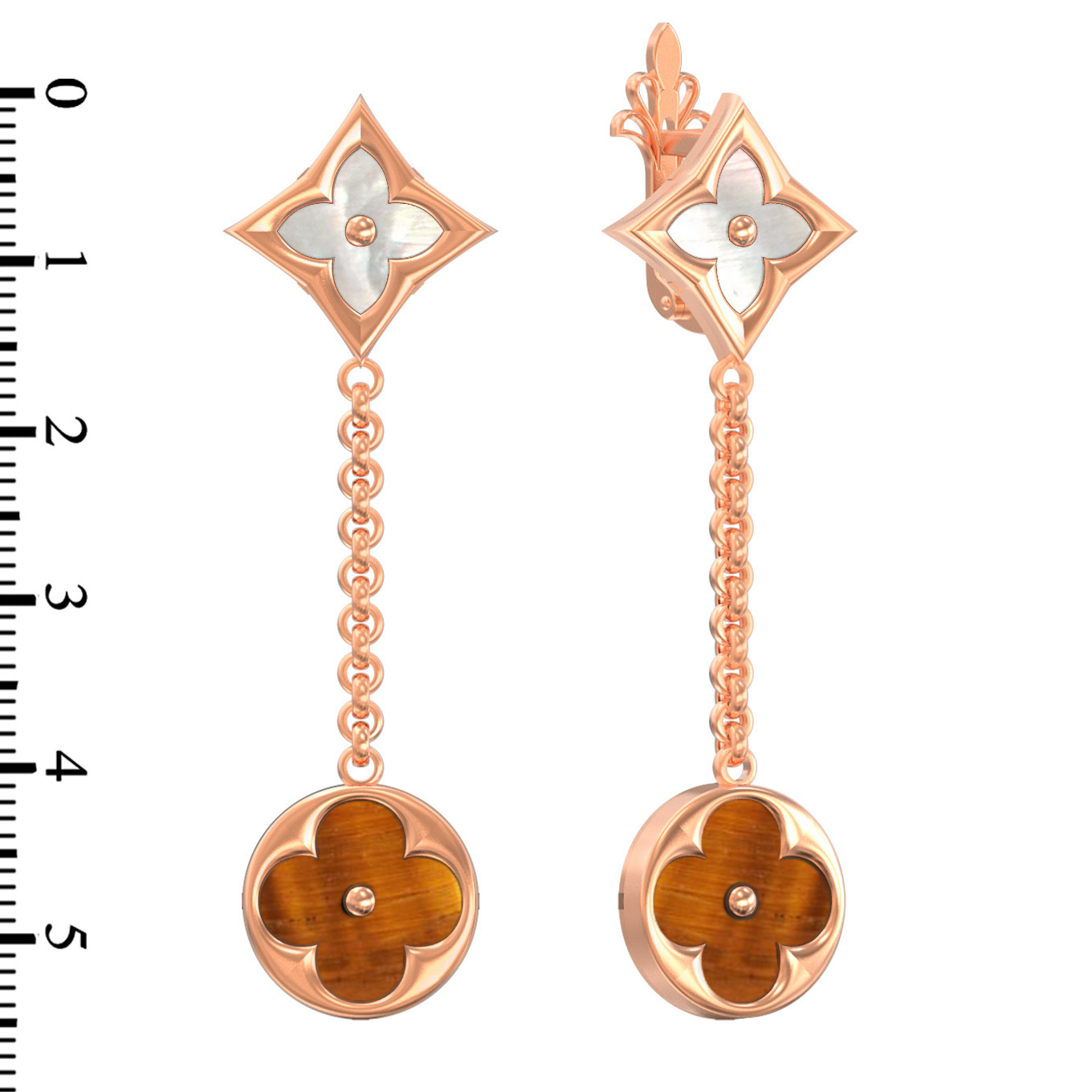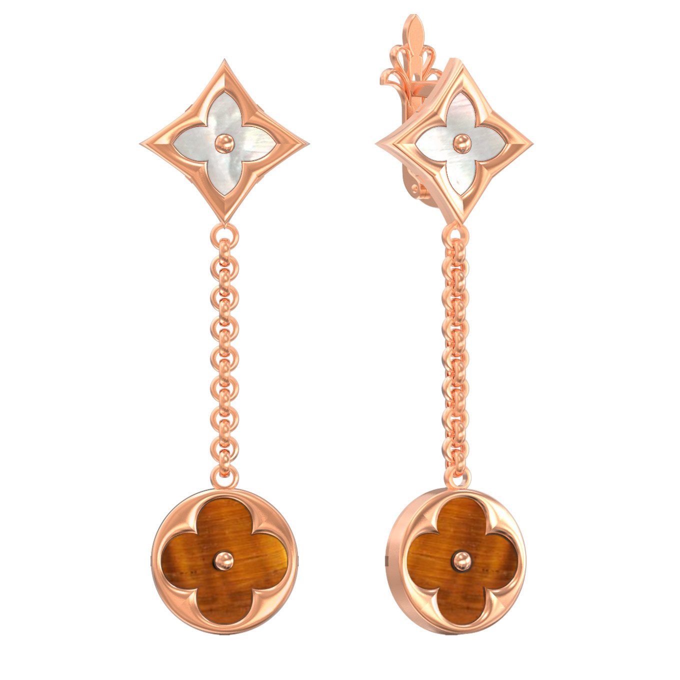 Серьги из золота c тигровым глазом и перламутром