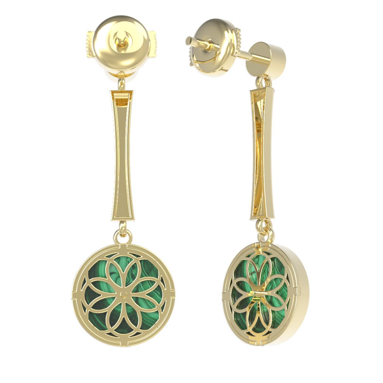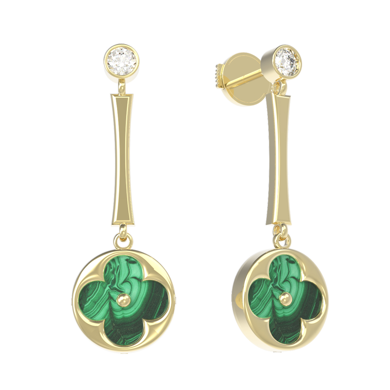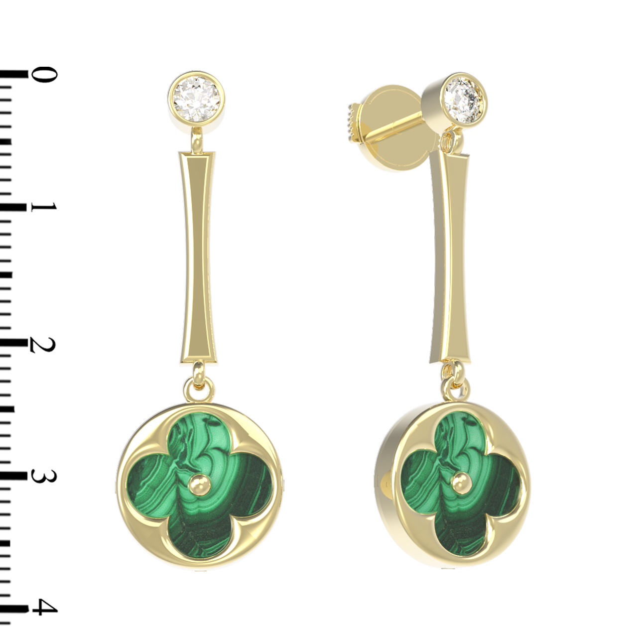 Серьги из лимонного золота c фианитом и малахитом