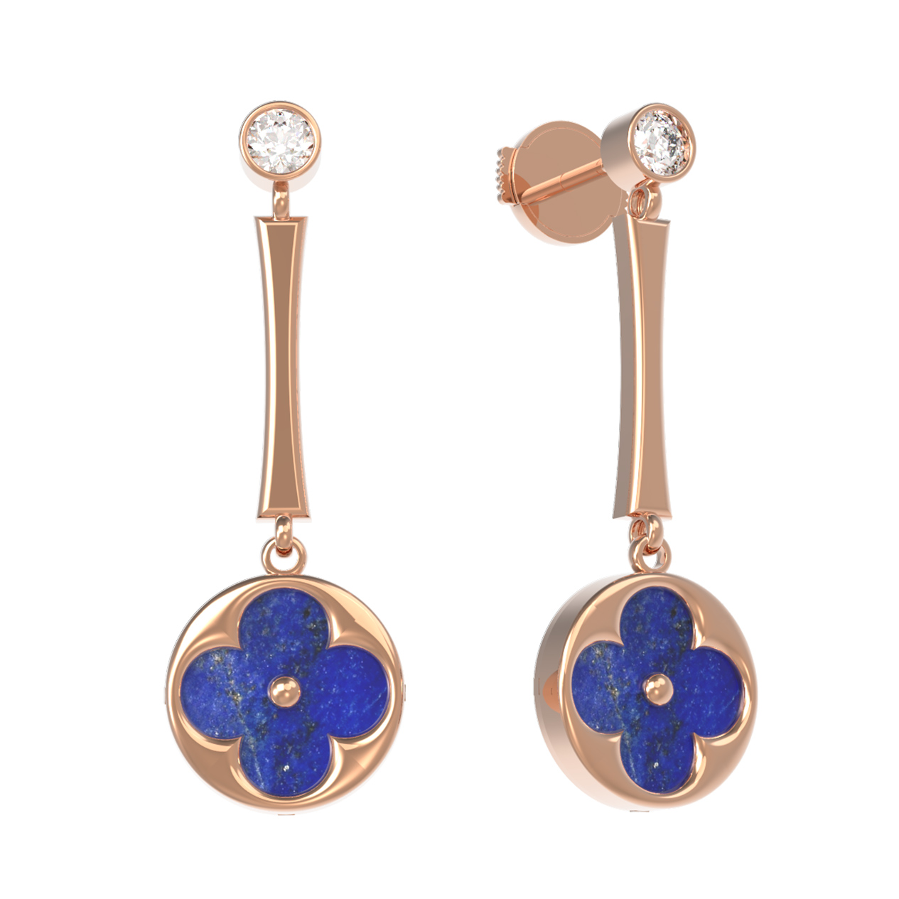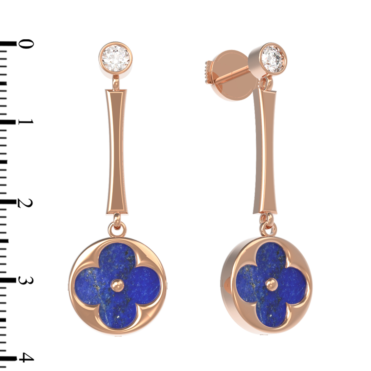 Серьги из золота c фианитом и лазуритом