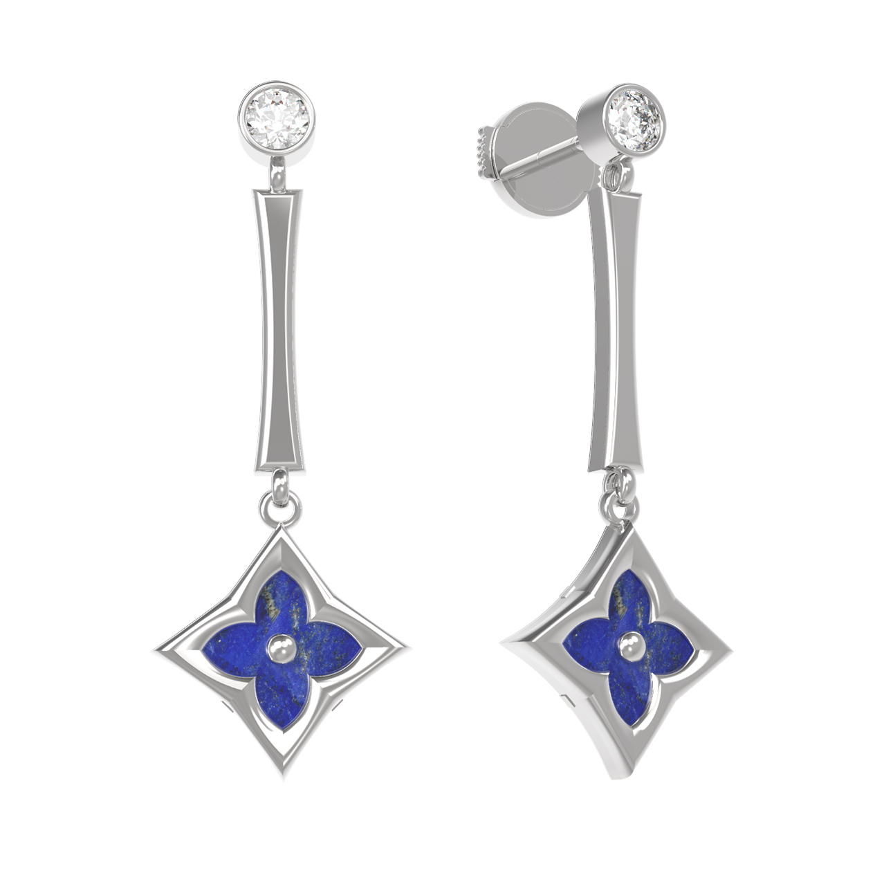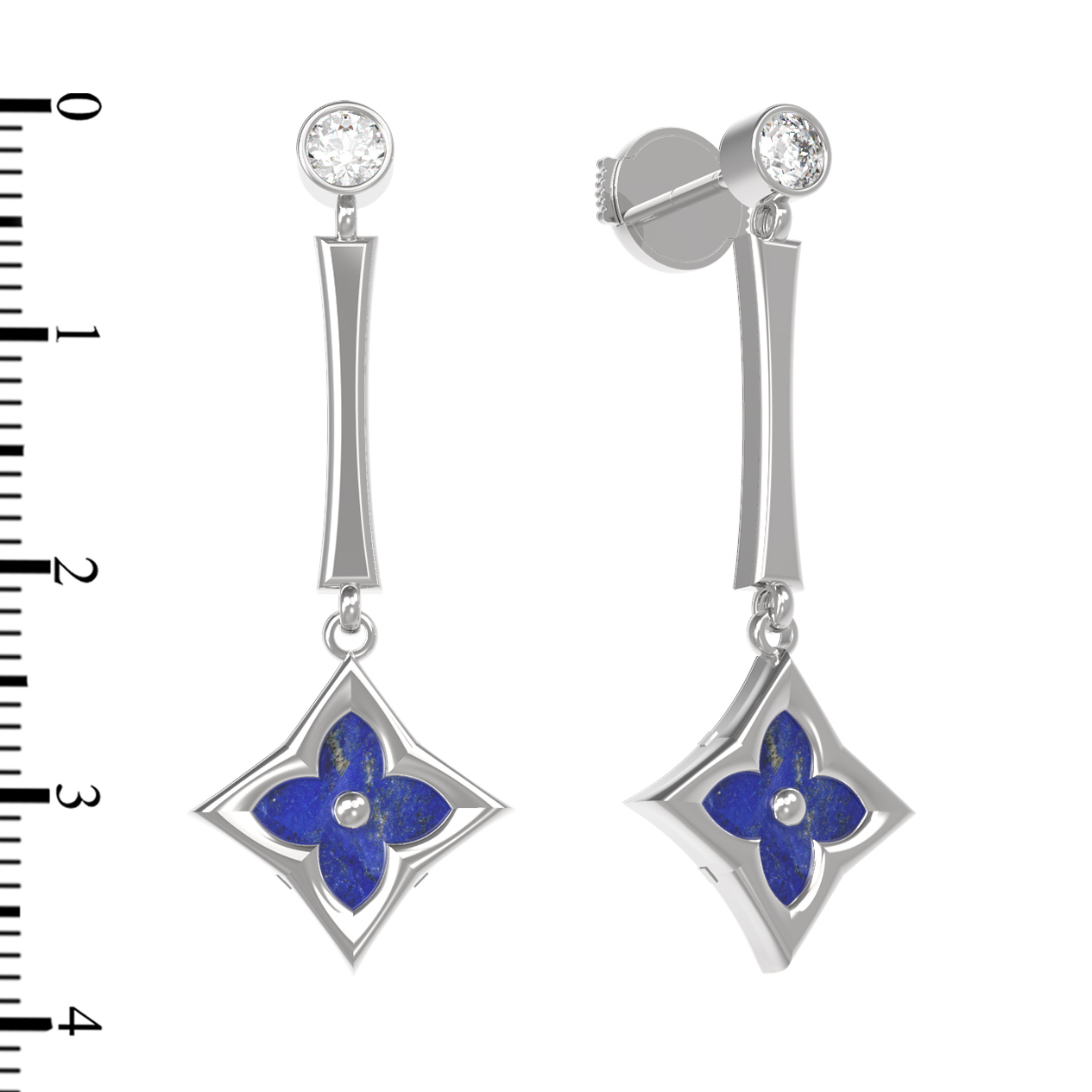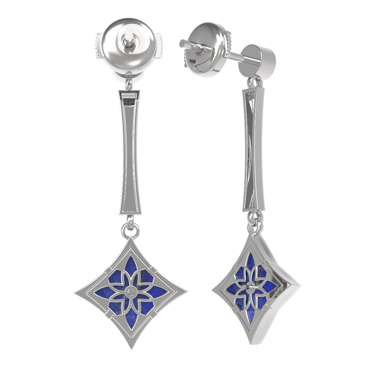 Серьги из белого золота c фианитом и лазуритом