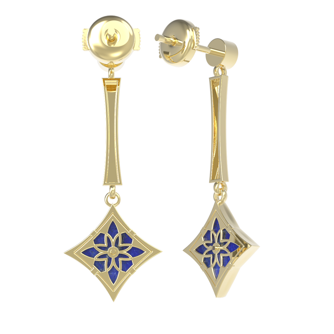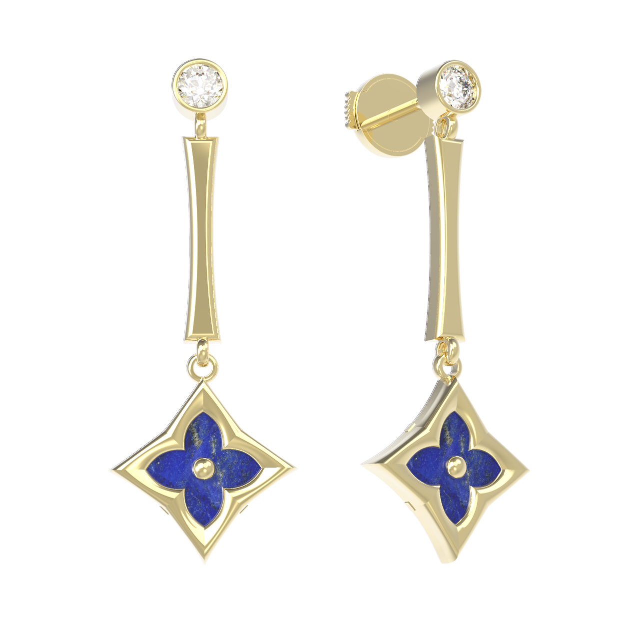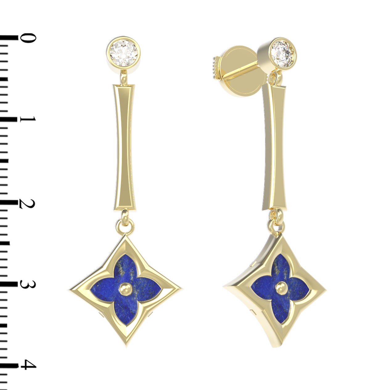 Серьги из лимонного золота c фианитом и лазуритом