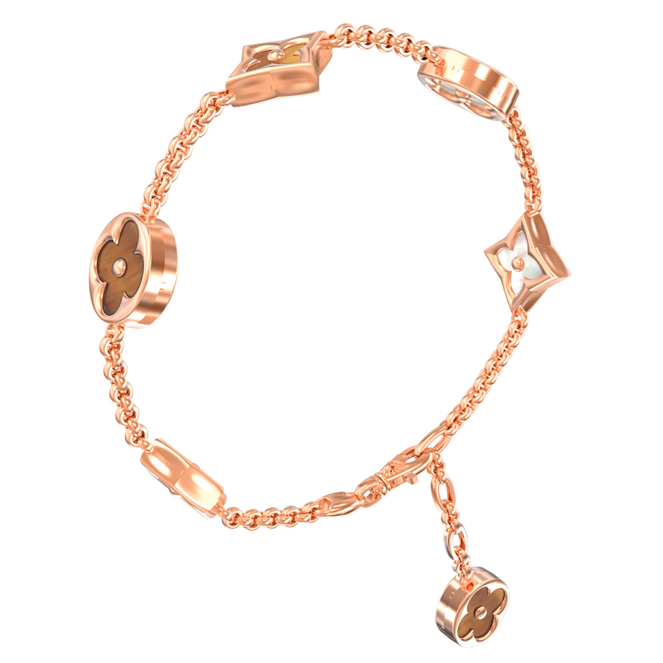 Браслет из золота c тигровым глазом и перламутром