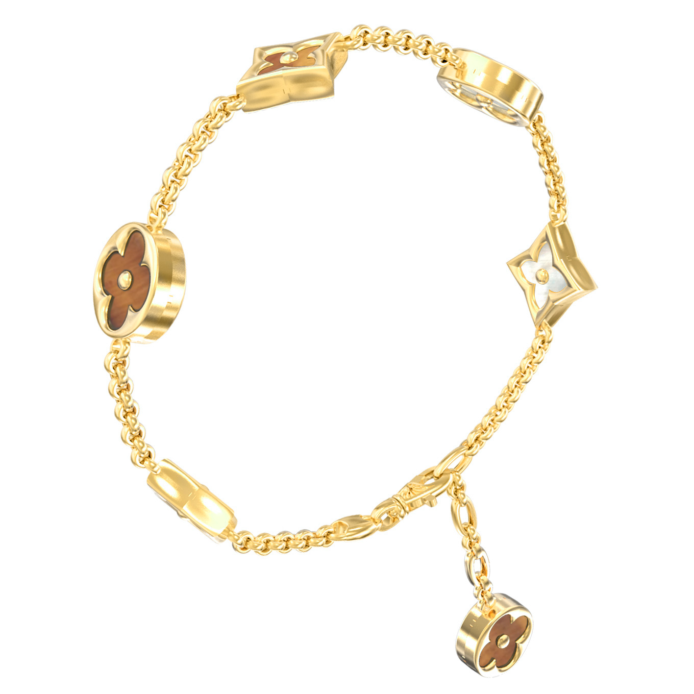 Браслет из лимонного золота c тигровым глазом и перламутром
