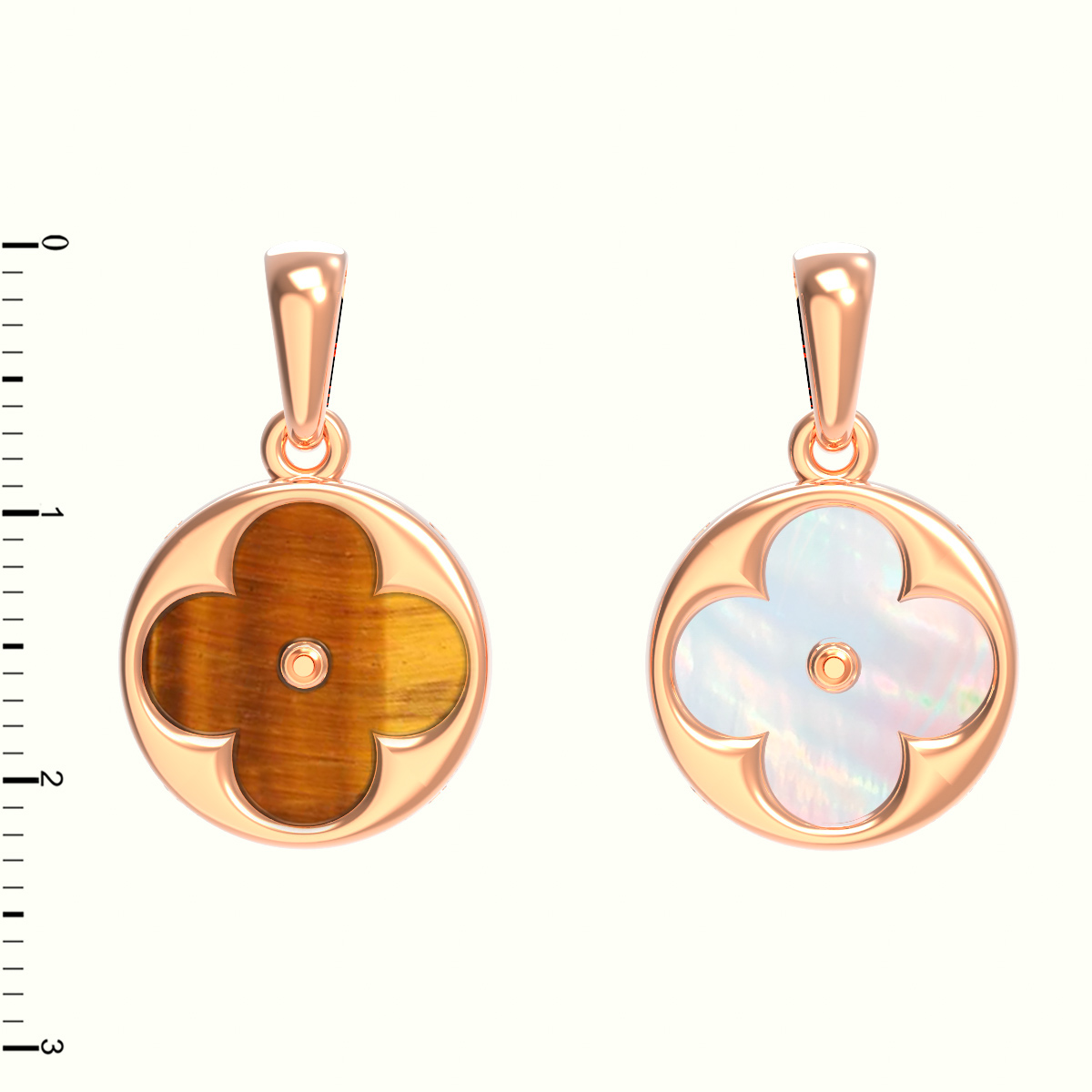 Подвеска из золота c тигровым глазом и перламутром
