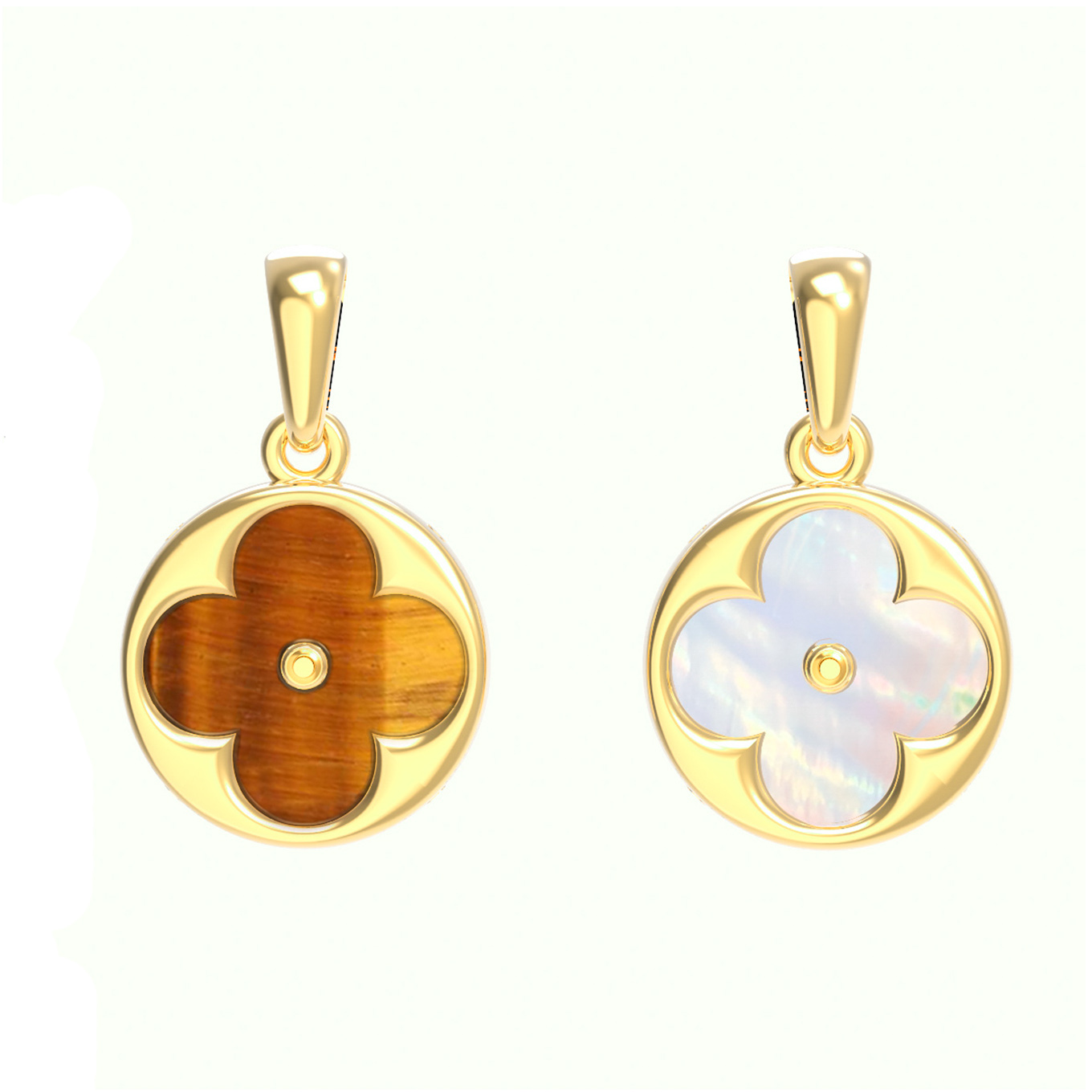 Подвеска из лимонного золота c тигровым глазом и перламутром