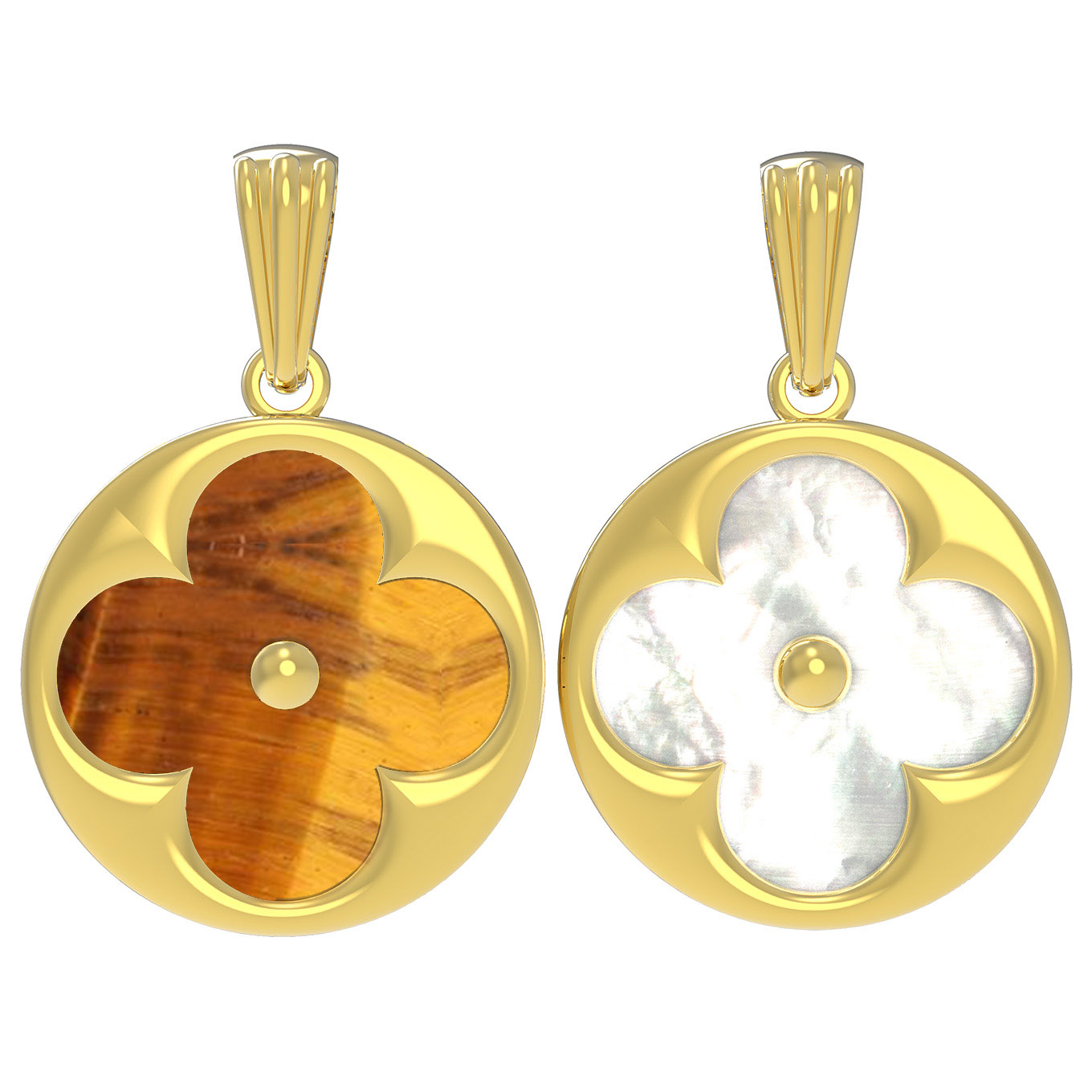 Подвеска из лимонного золота c тигровым глазом и перламутром