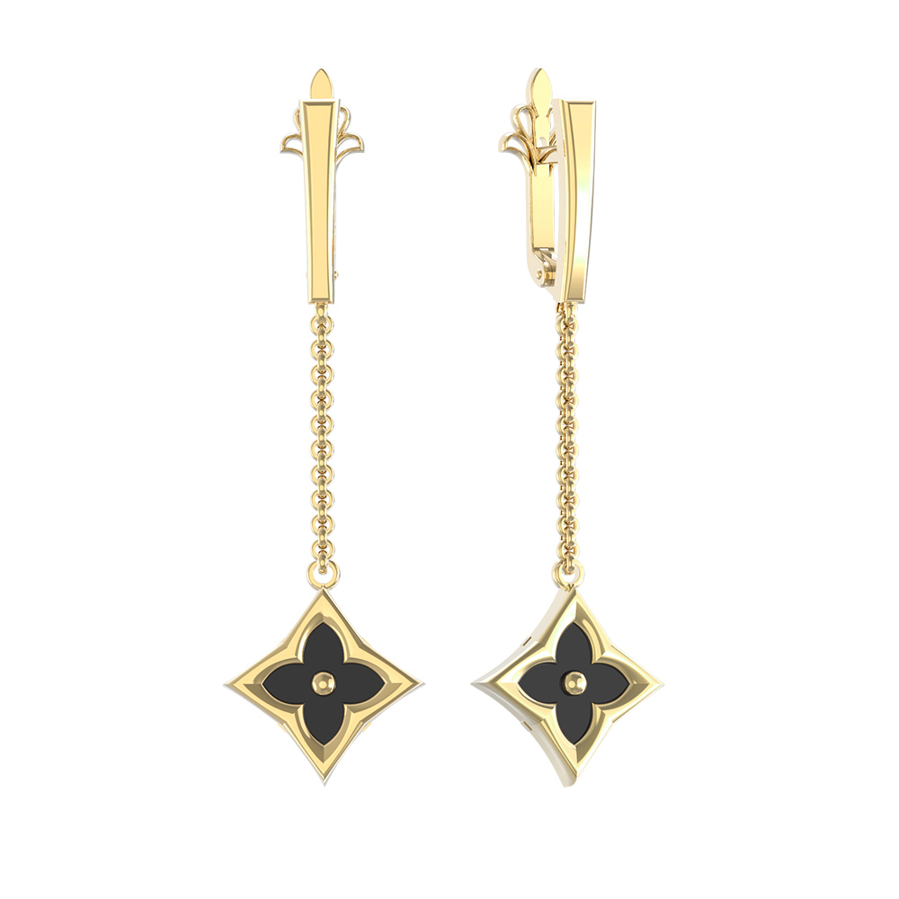 Серьги из лимонного золота c ониксом