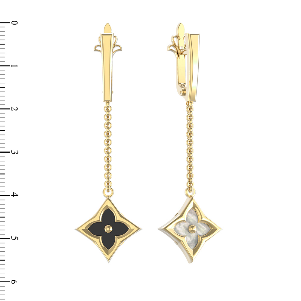 Серьги из лимонного золота c ониксом и перламутром