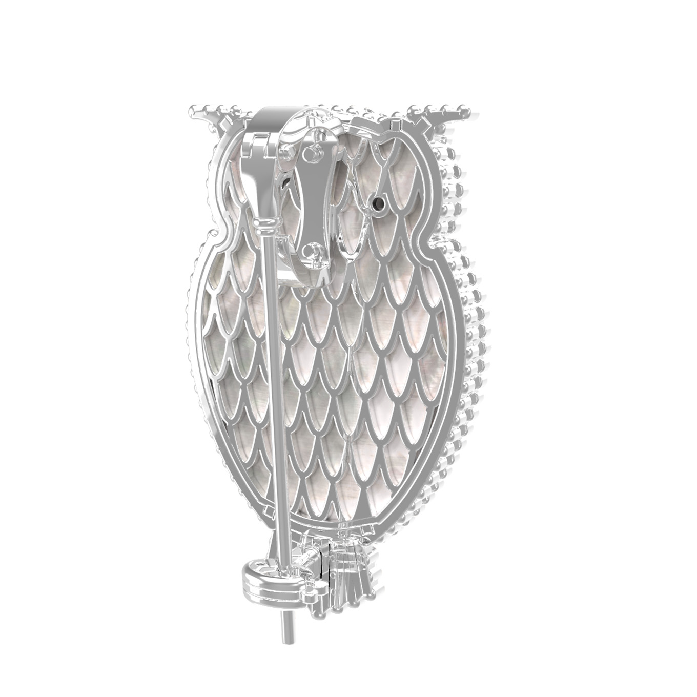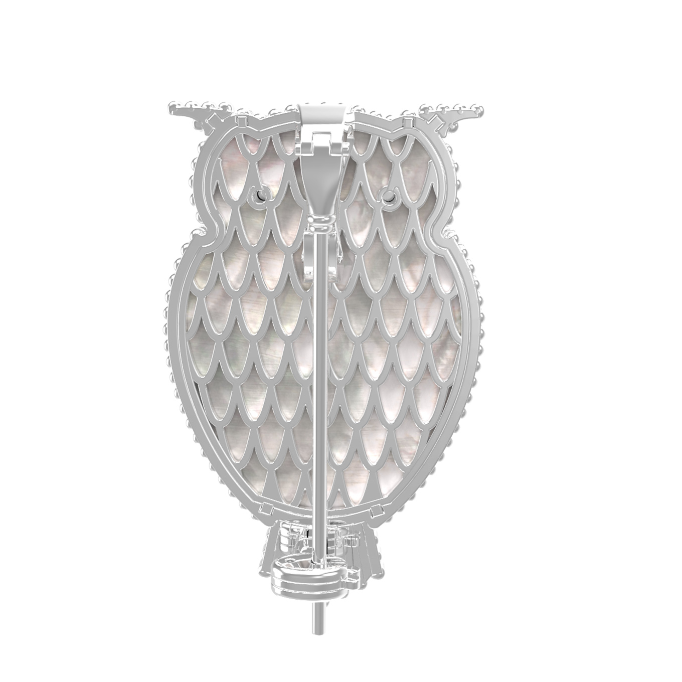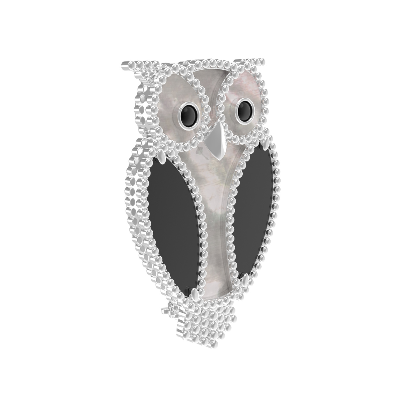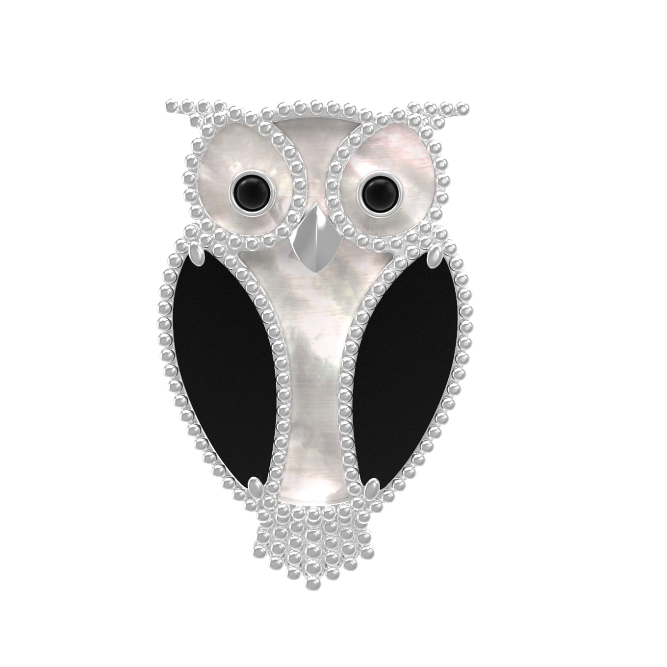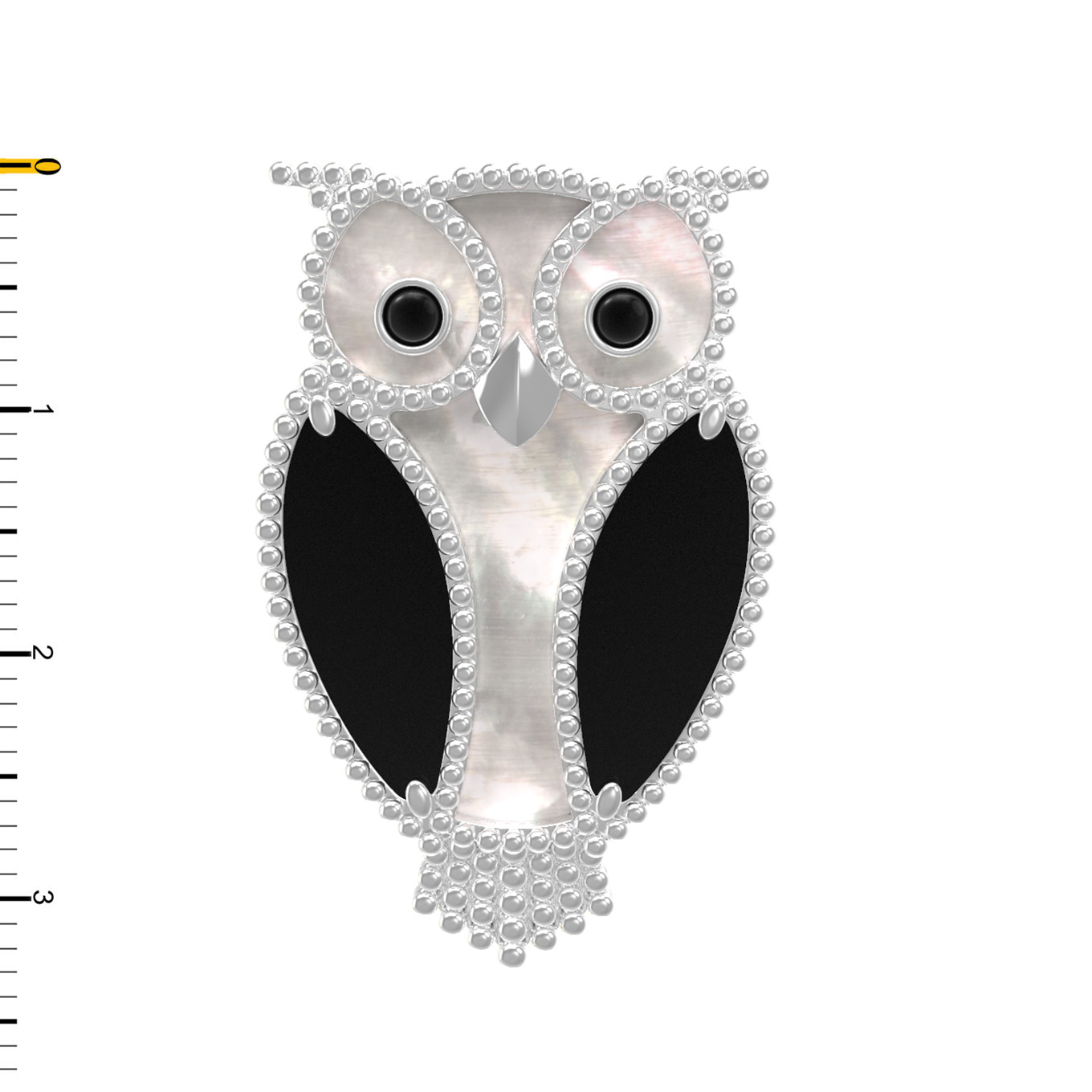 Брошь из белого золота c эмалью, ониксом и перламутром