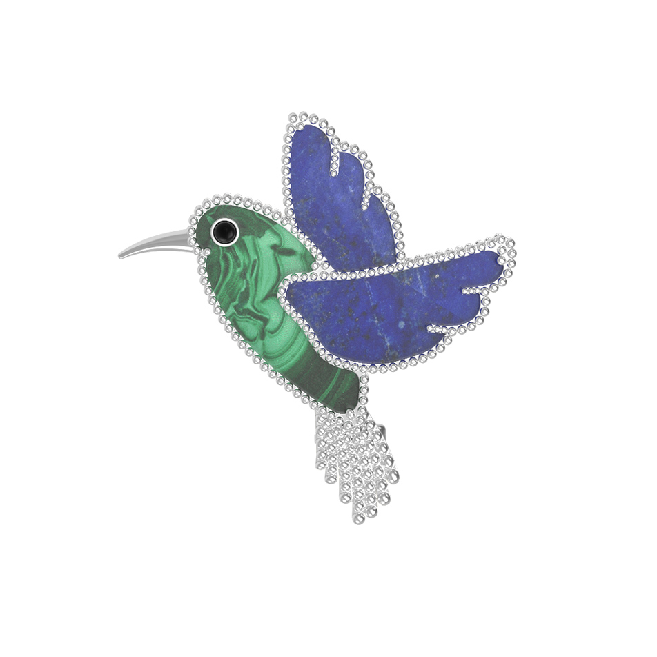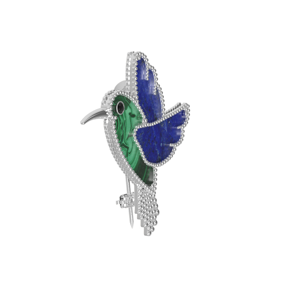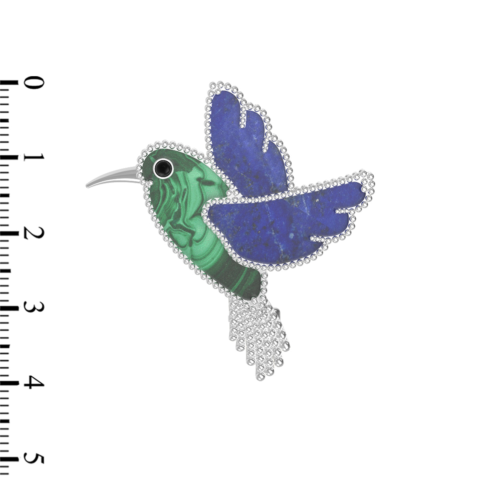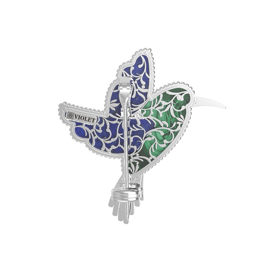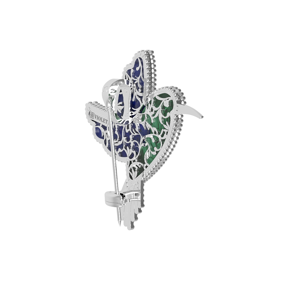 Брошь из белого золота c эмалью, лазуритом и малахитом