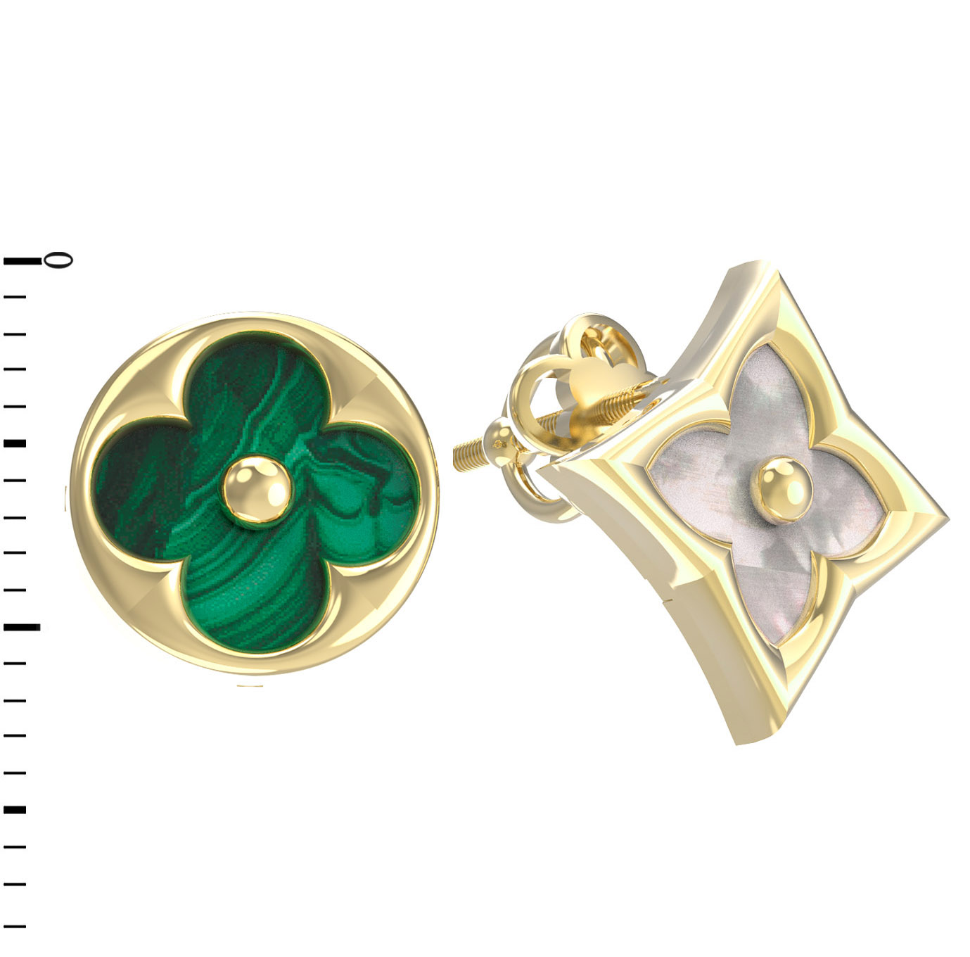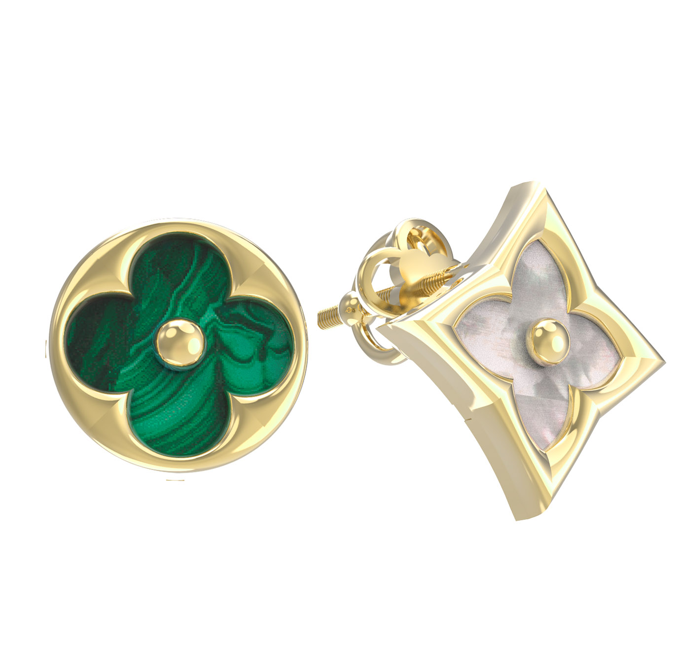 Серьги из лимонного золота c малахитом и перламутром