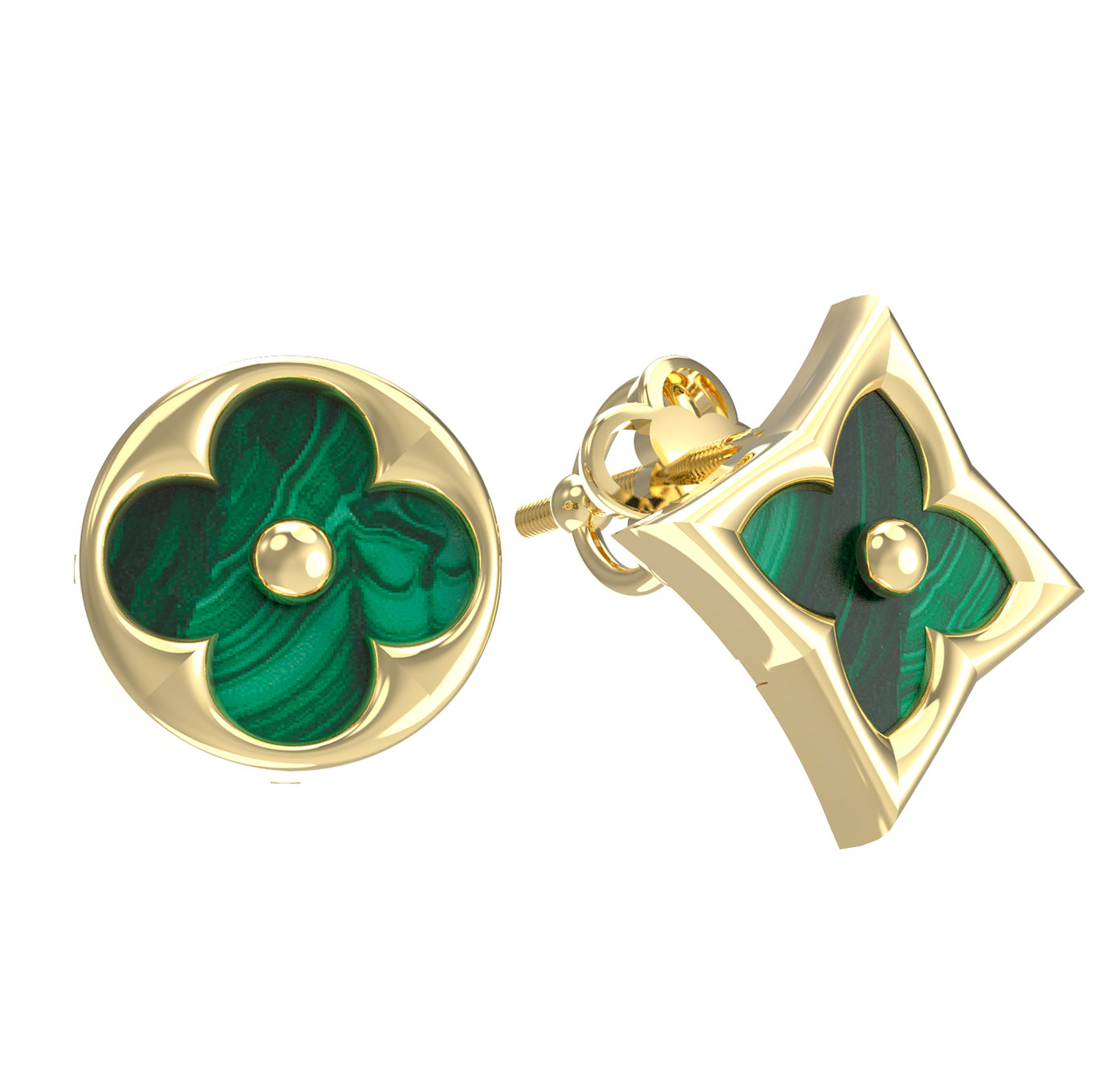 Серьги из лимонного золота c малахитом