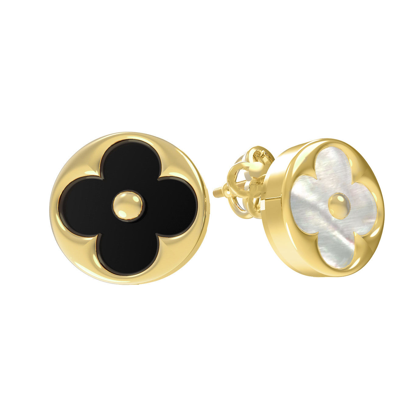 Серьги из лимонного золота c ониксом и перламутром