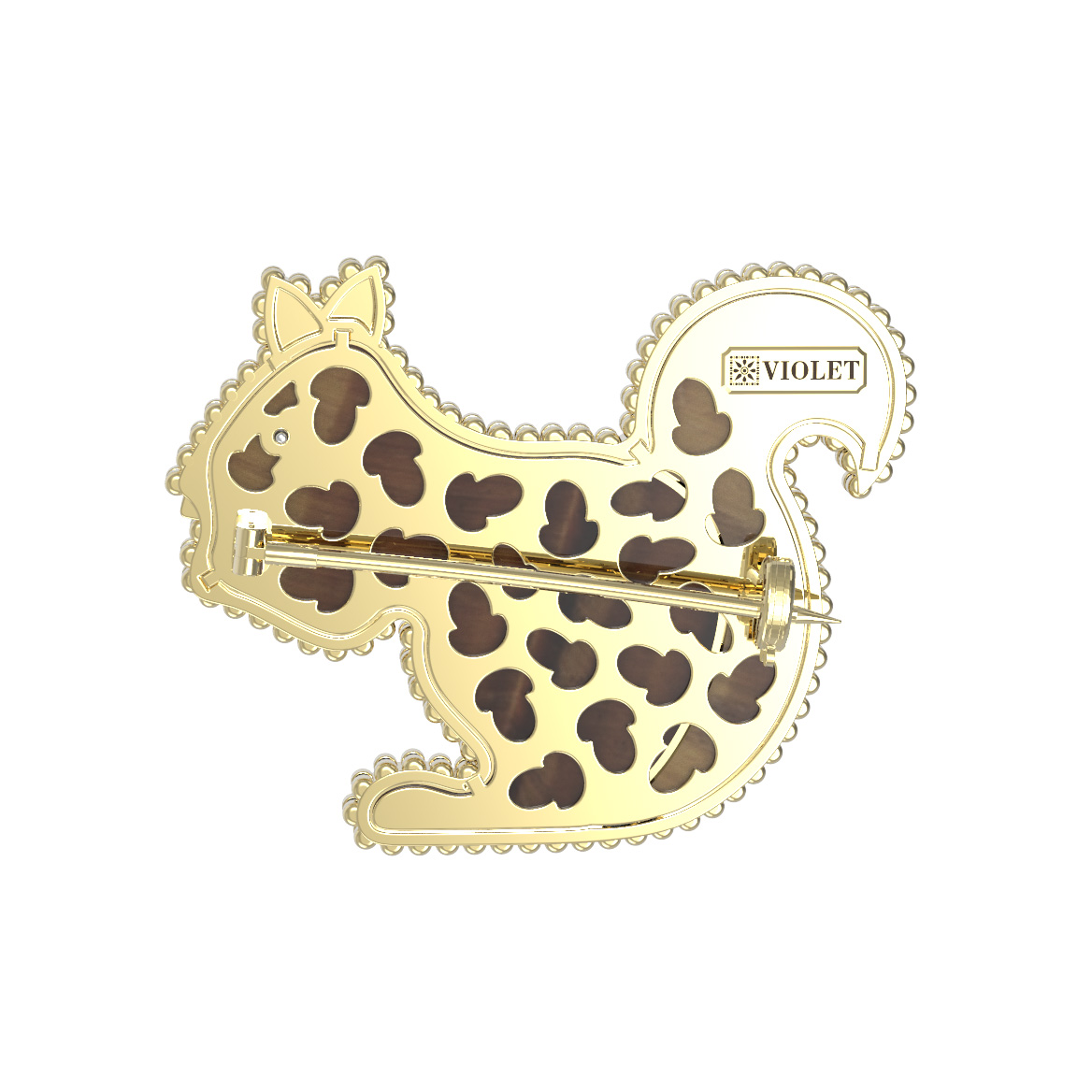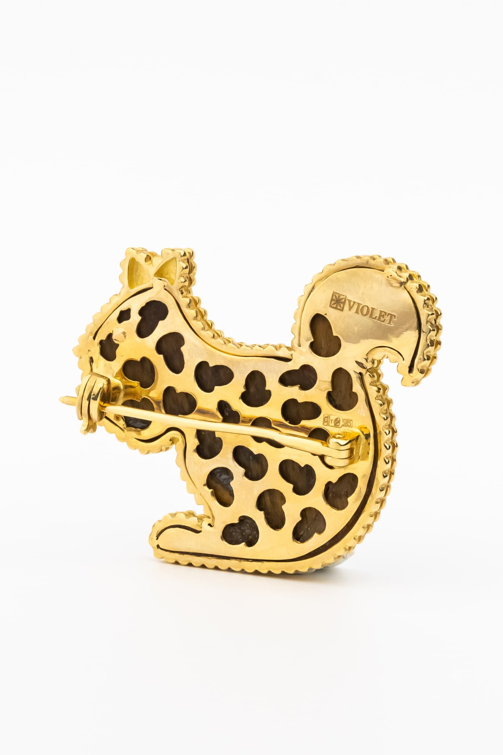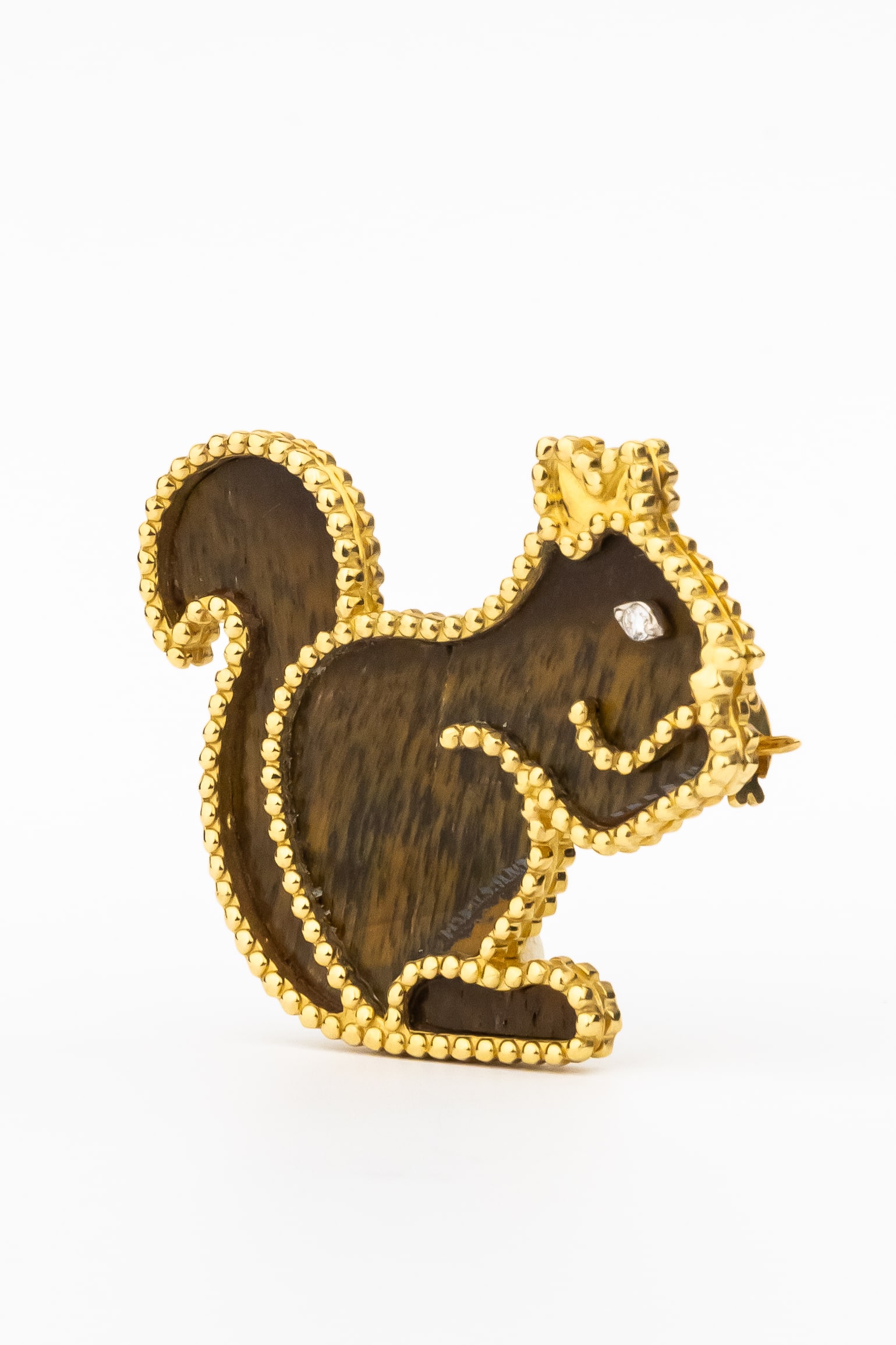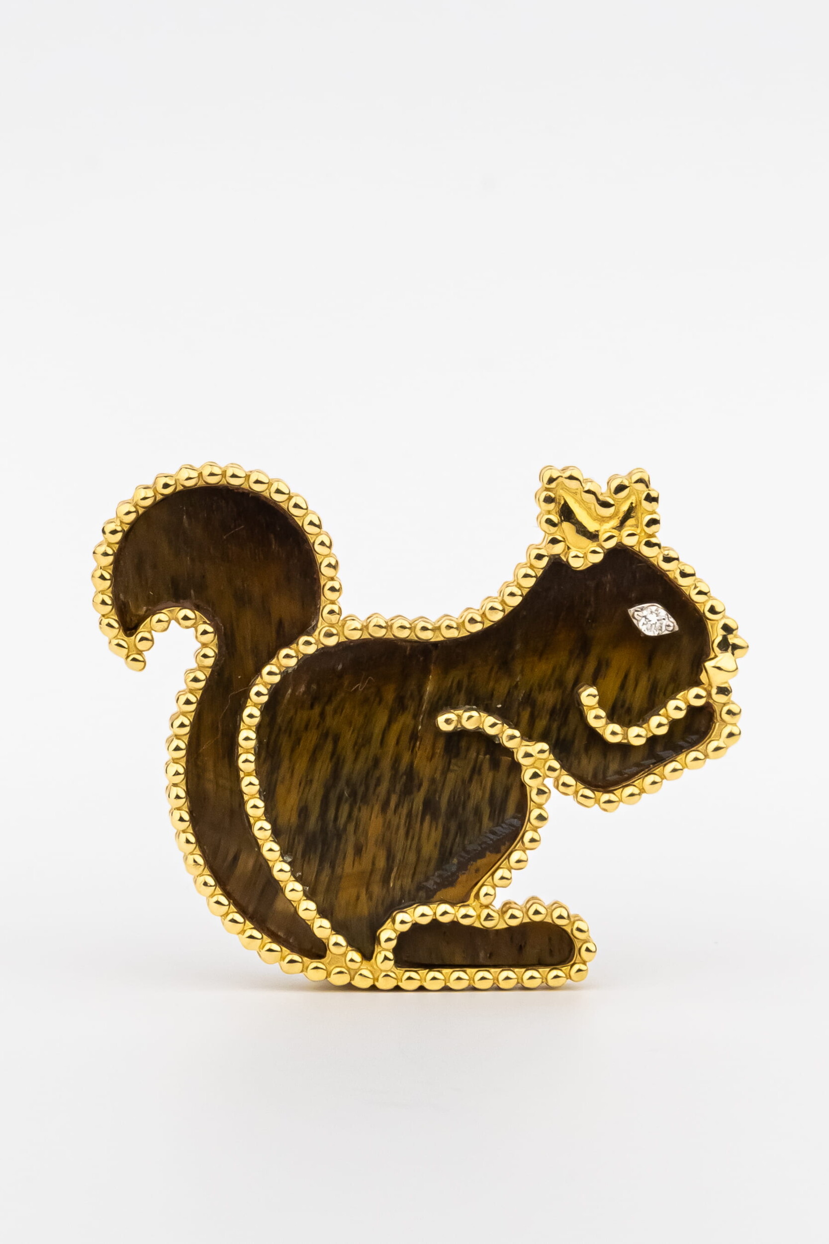 Брошь из лимонного золота c бриллиантами и тигровым глазом