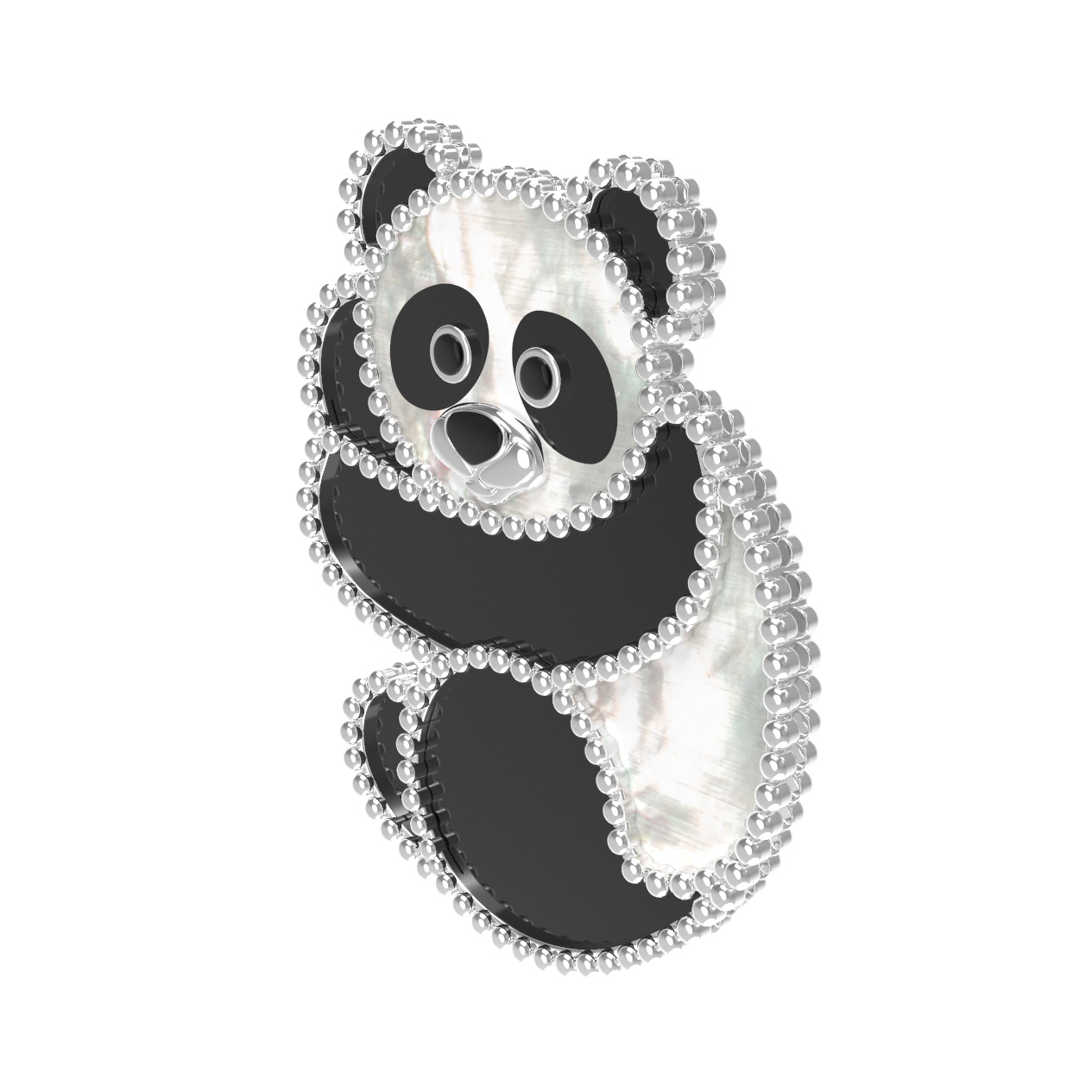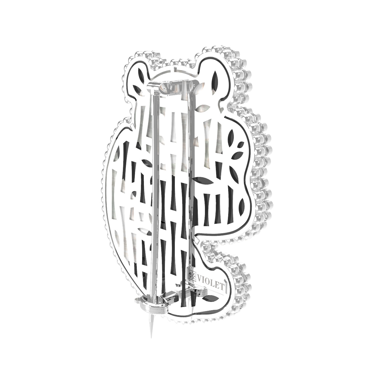 Брошь из белого золота c эмалью, ониксом и перламутром