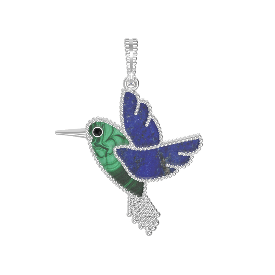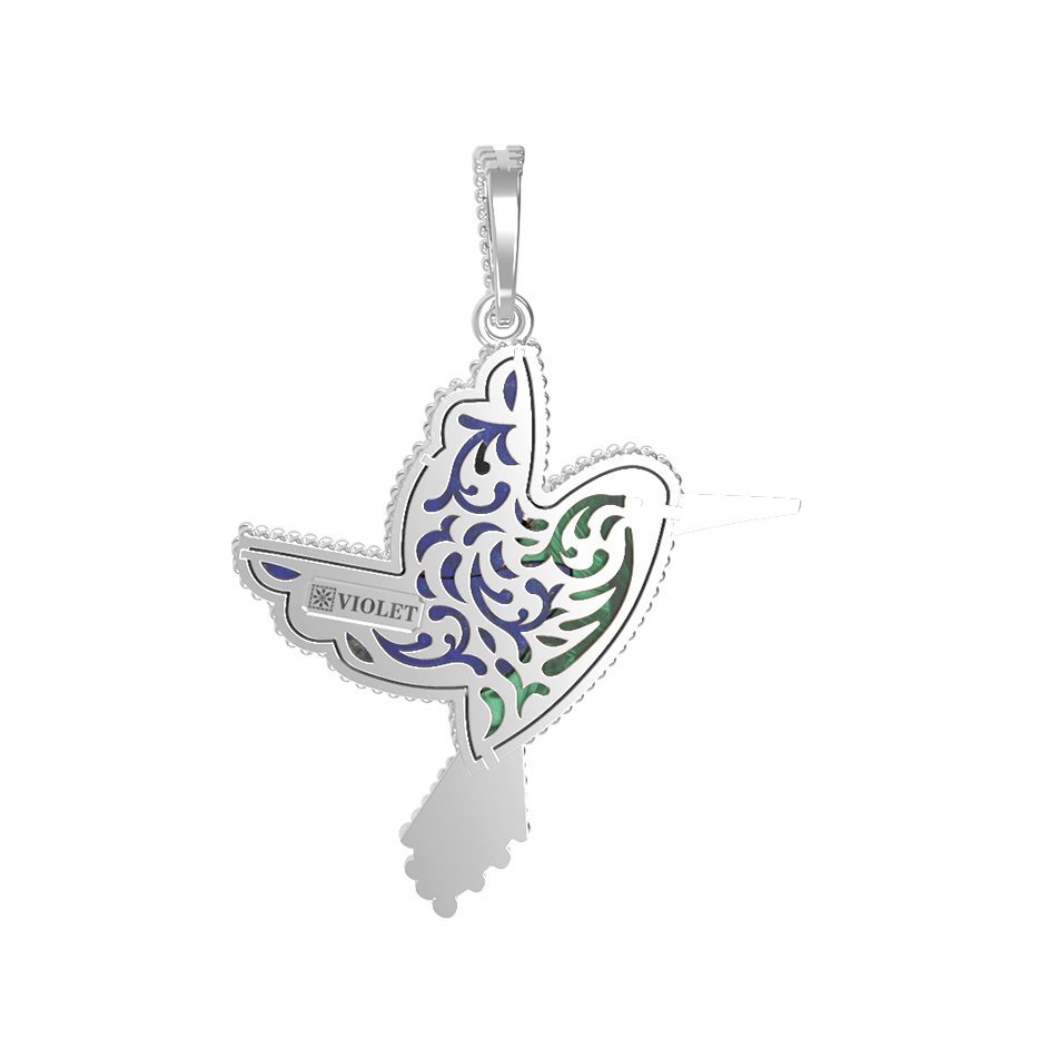 Подвеска из белого золота c эмалью, лазуритом и малахитом