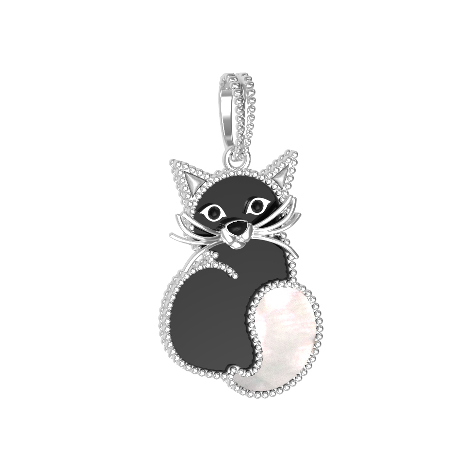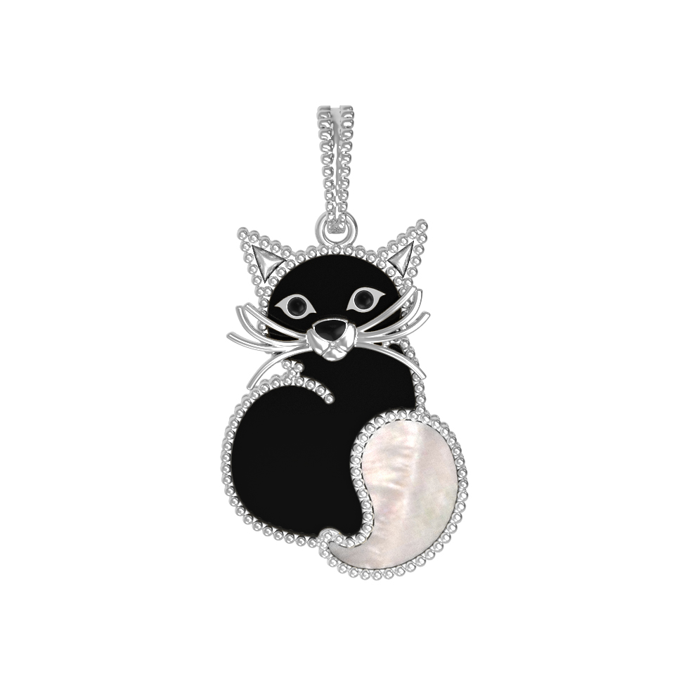 Подвеска из белого золота c эмалью, ониксом и перламутром