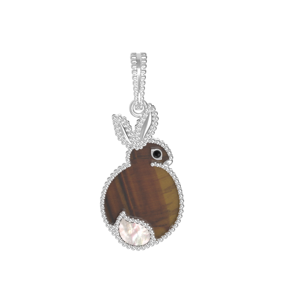 Подвеска из белого золота c эмалью, тигровым глазом и перламутром