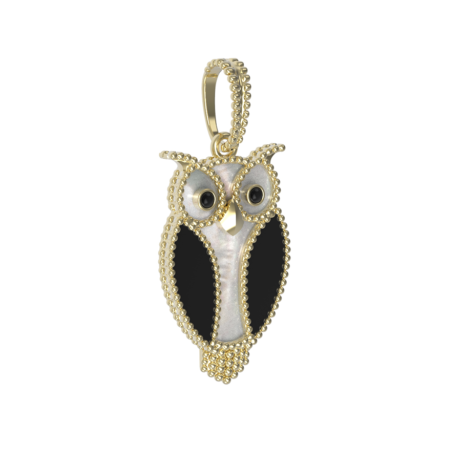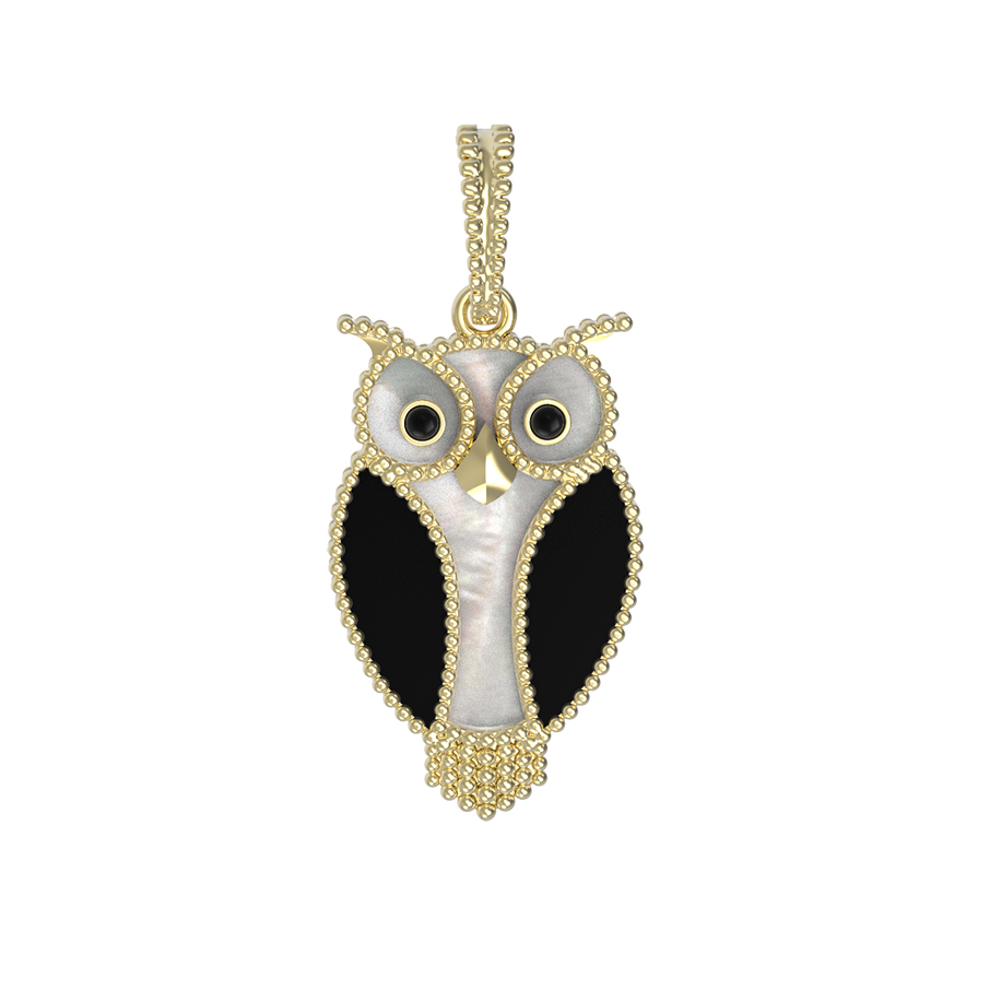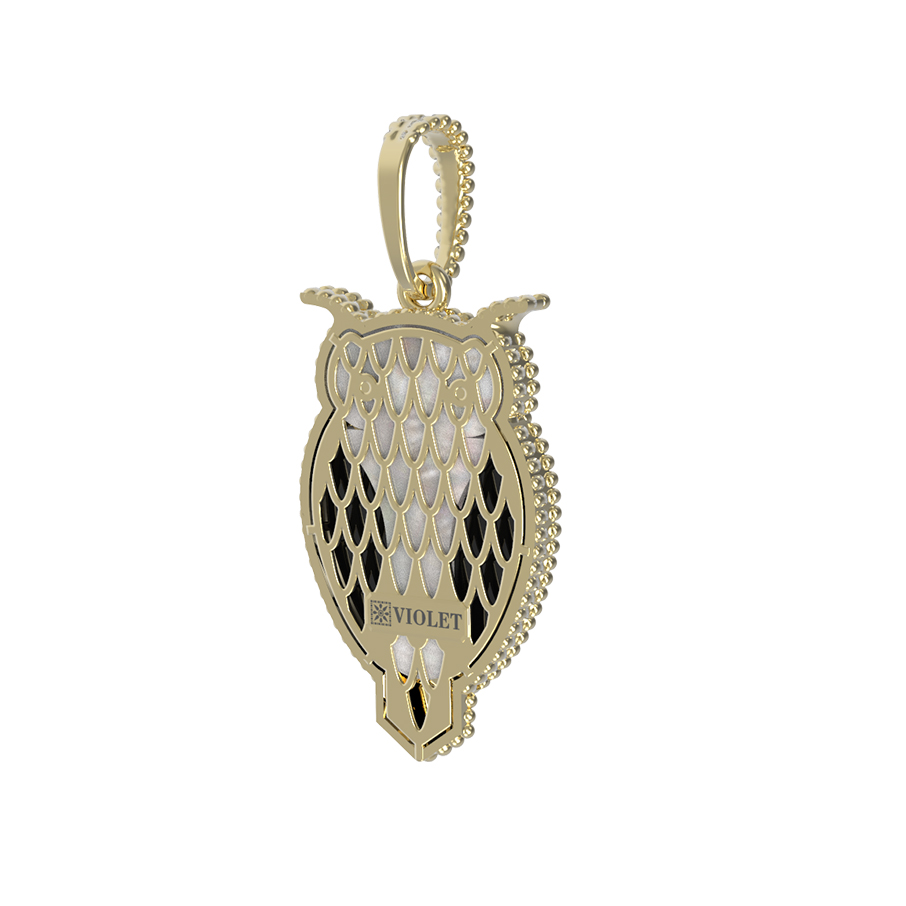 Подвеска из лимонного золота c эмалью, ониксом и перламутром