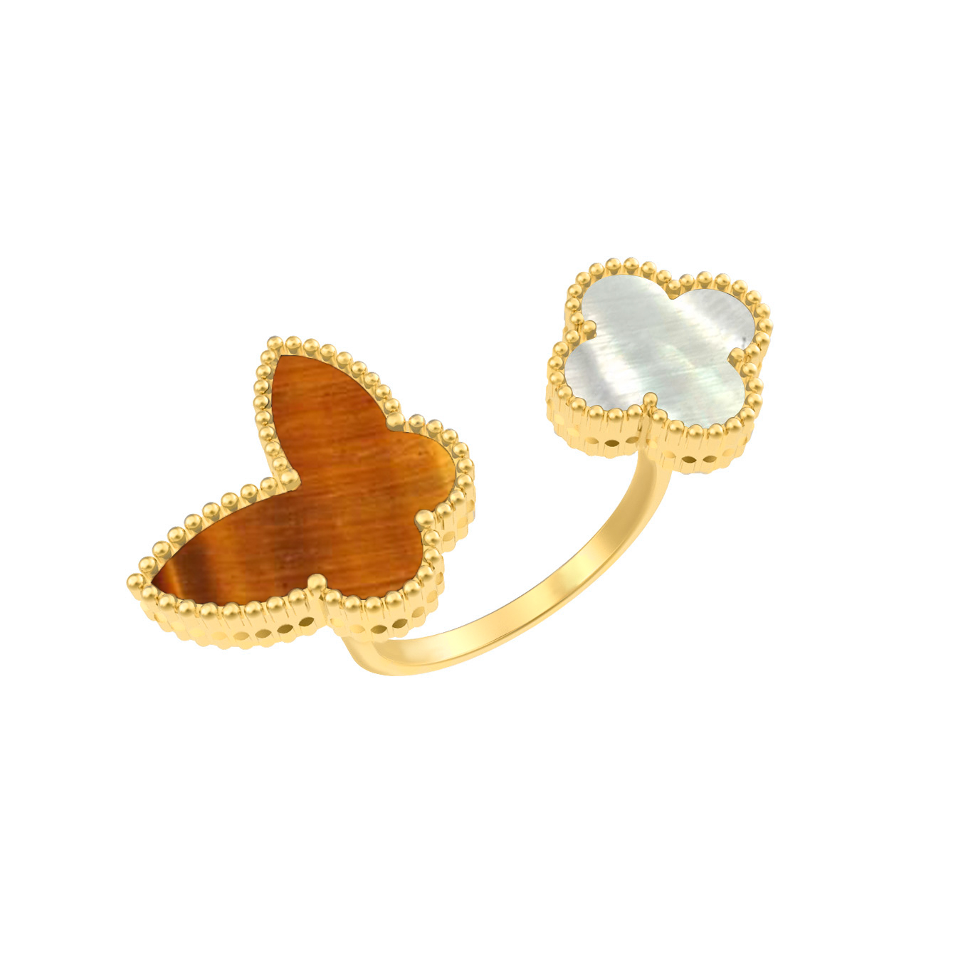 Кольцо из лимонного золота c тигровым глазом и перламутром
