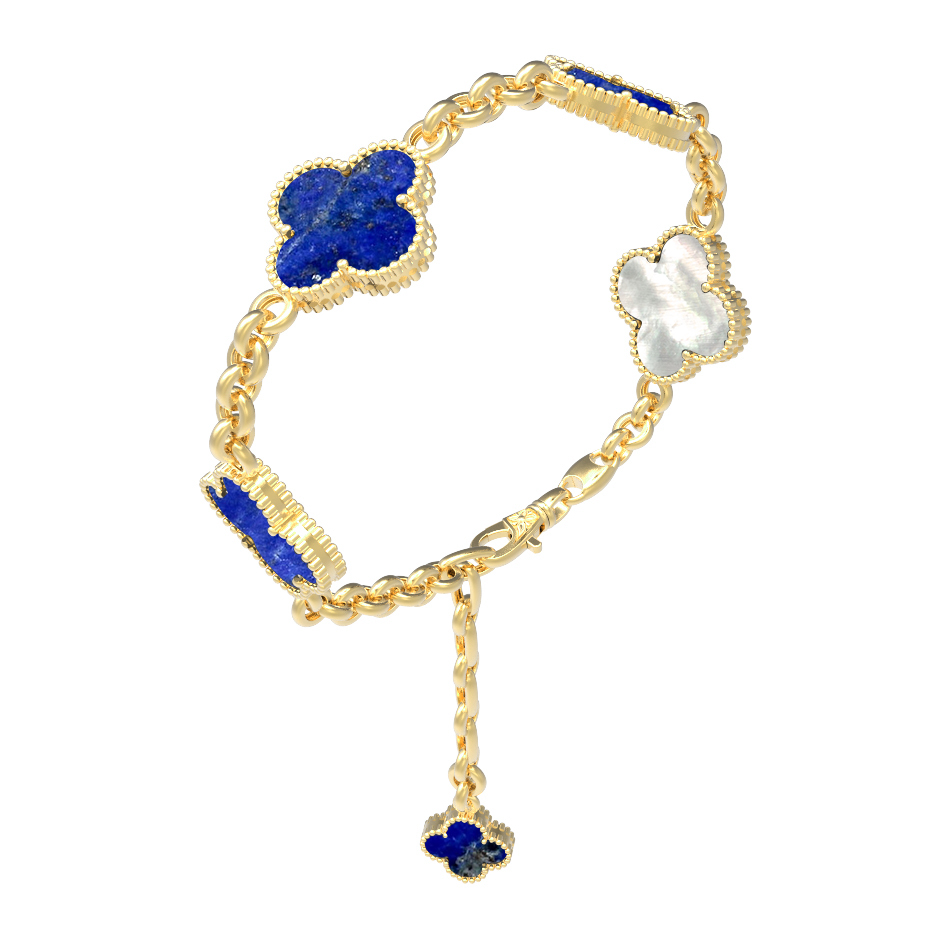 Браслет из лимонного золота c лазуритом и перламутром