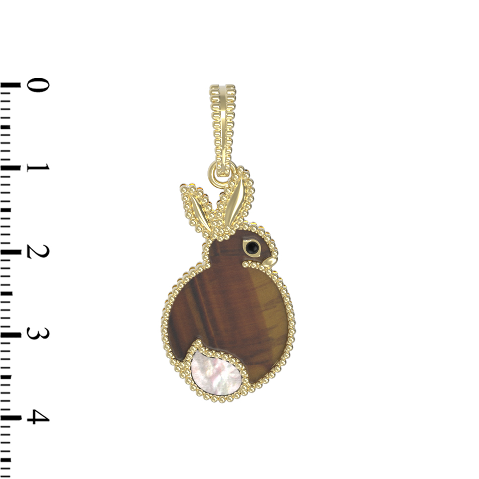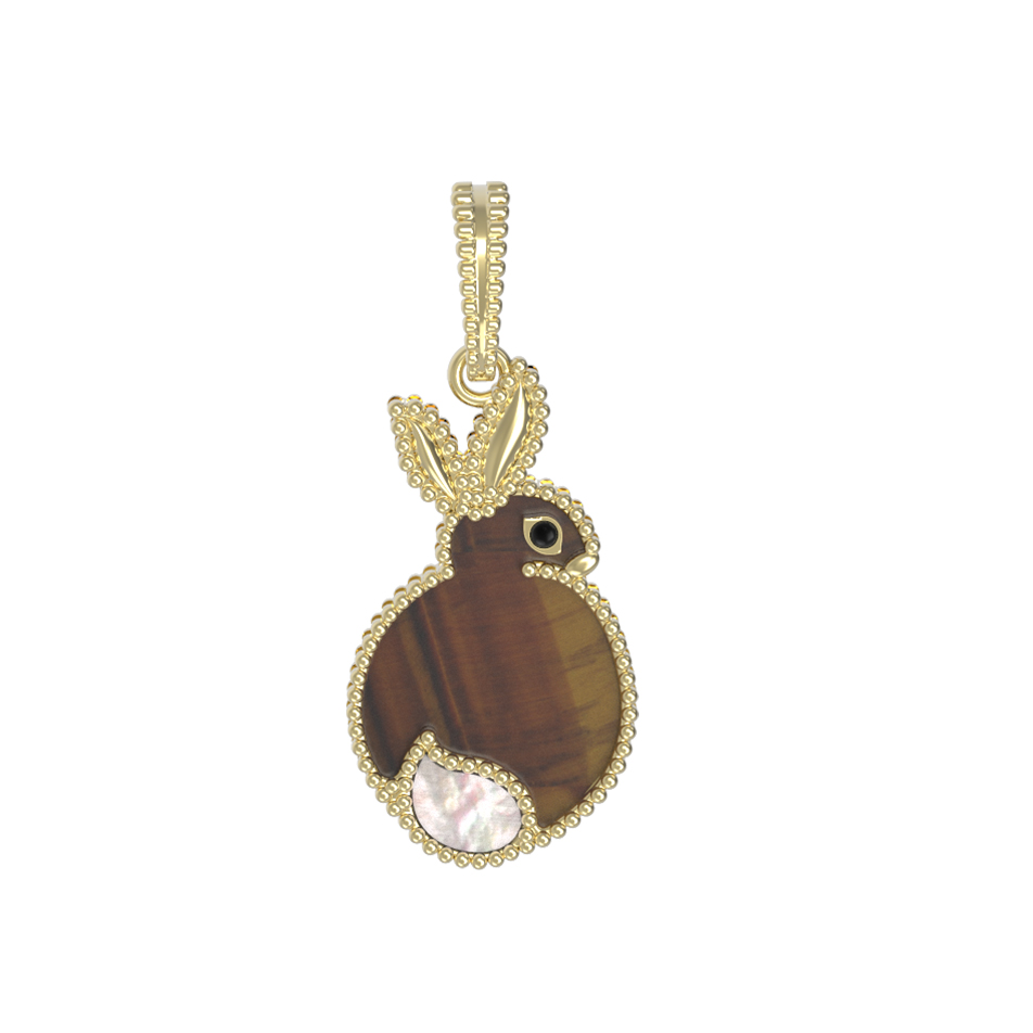 Подвеска из лимонного золота c эмалью, тигровым глазом и перламутром