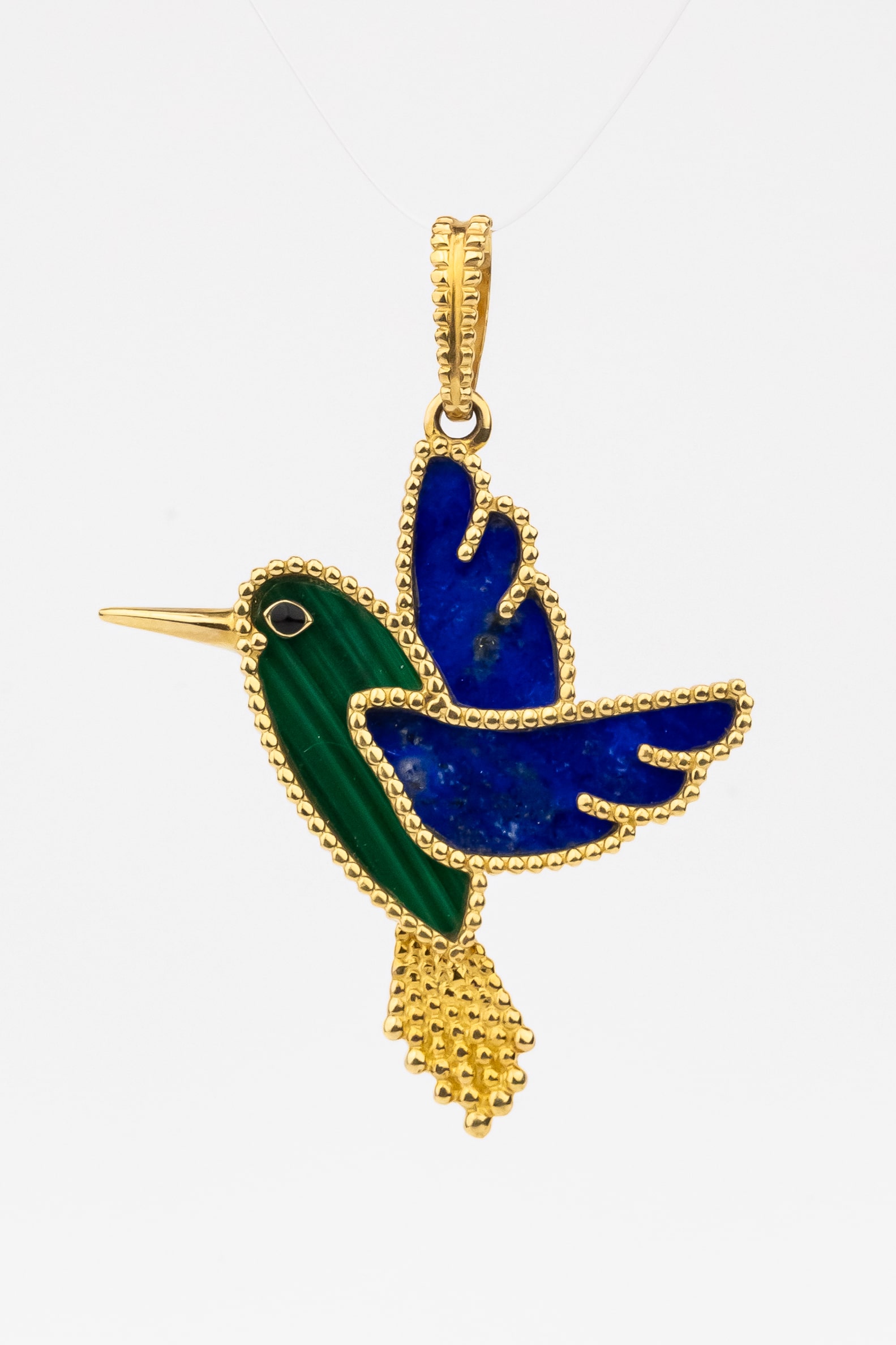Подвеска из лимонного золота c эмалью, лазуритом и малахитом