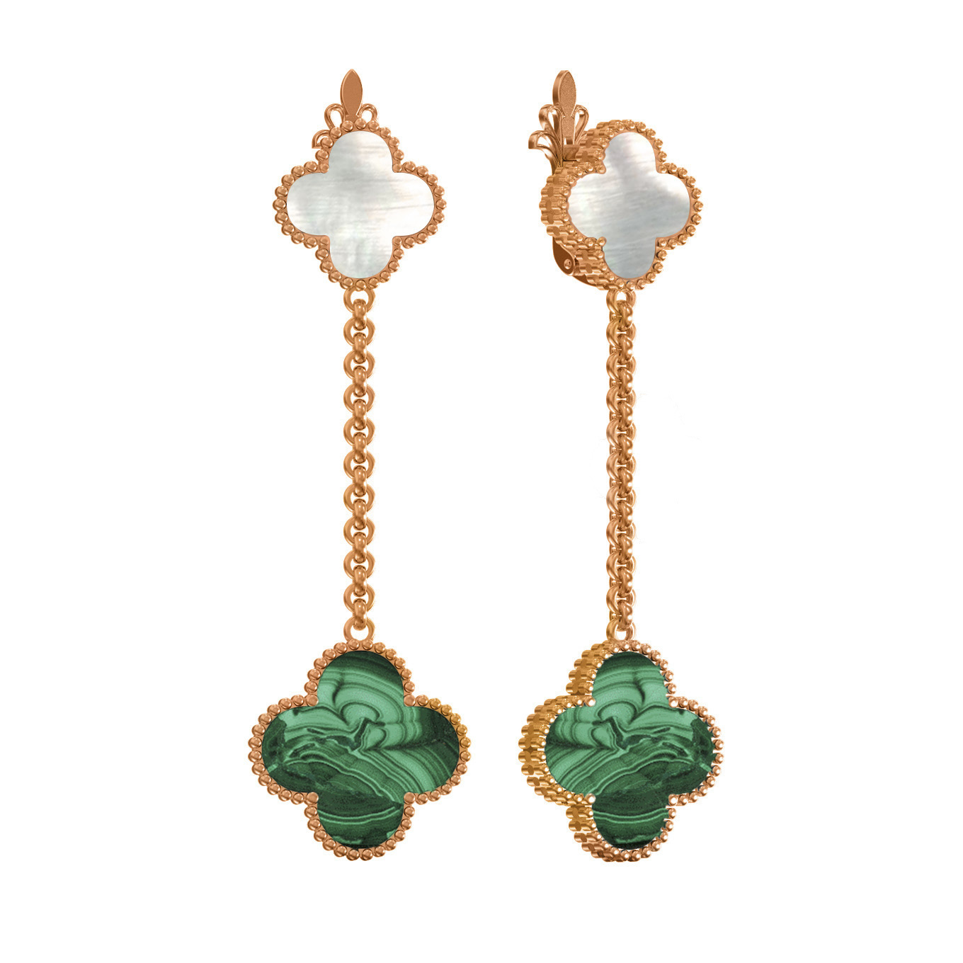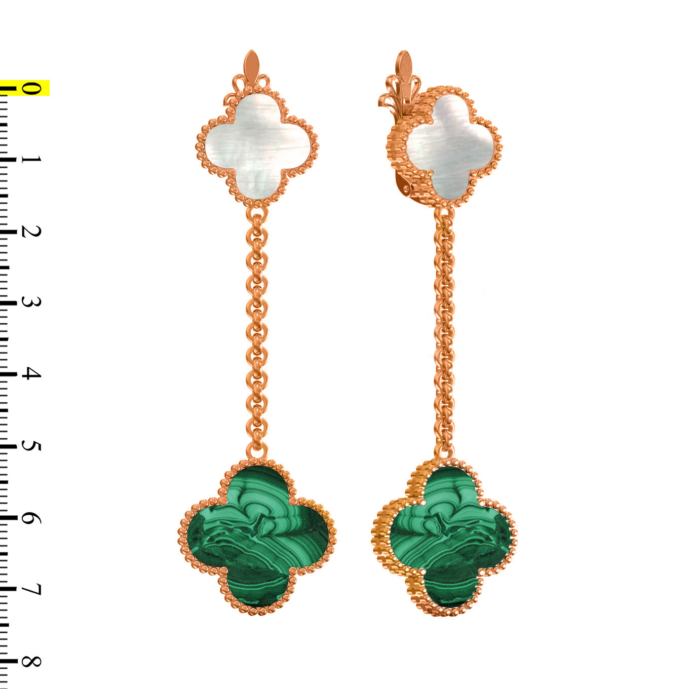 Серьги из золота c малахитом и перламутром