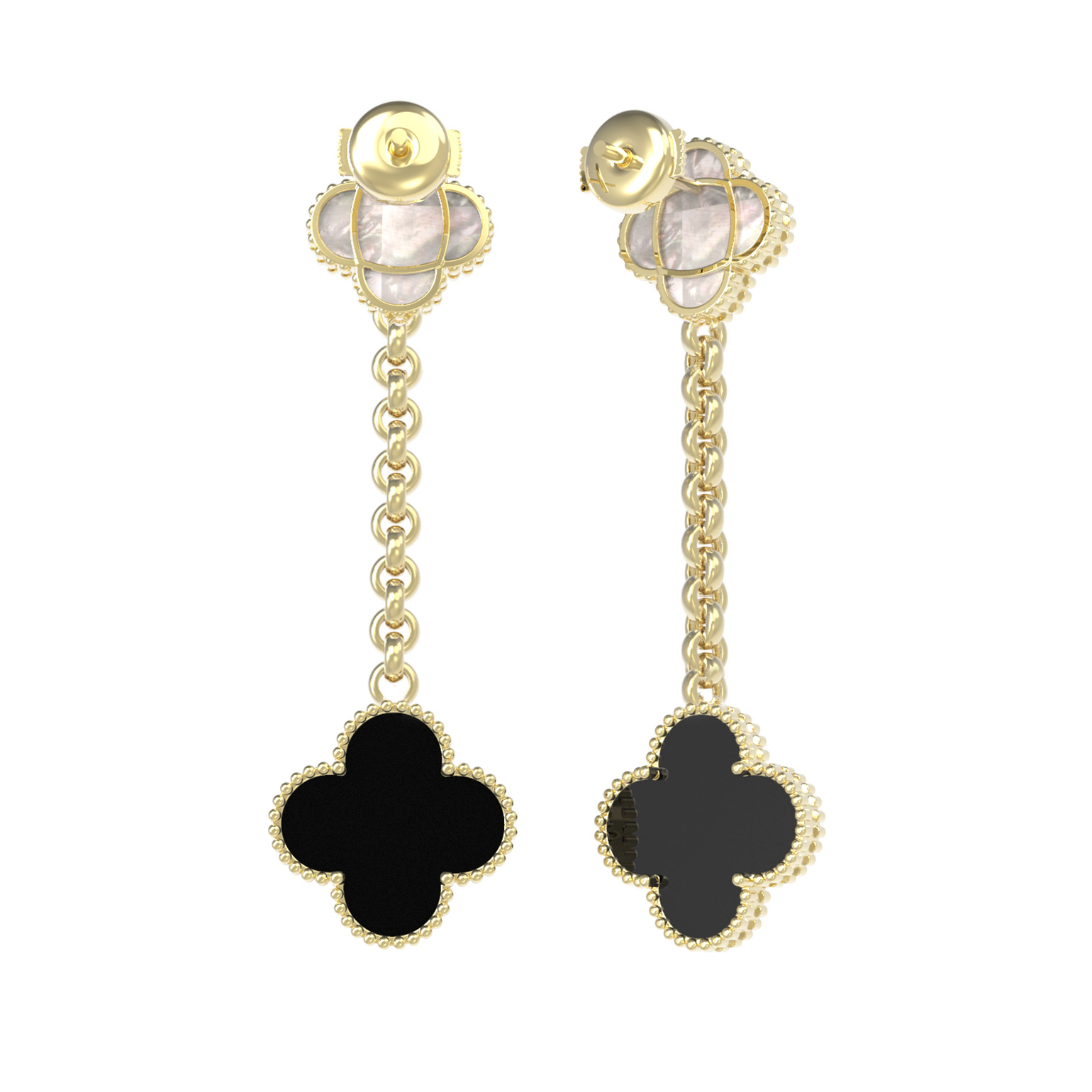 Серьги из лимонного золота c ониксом и перламутром