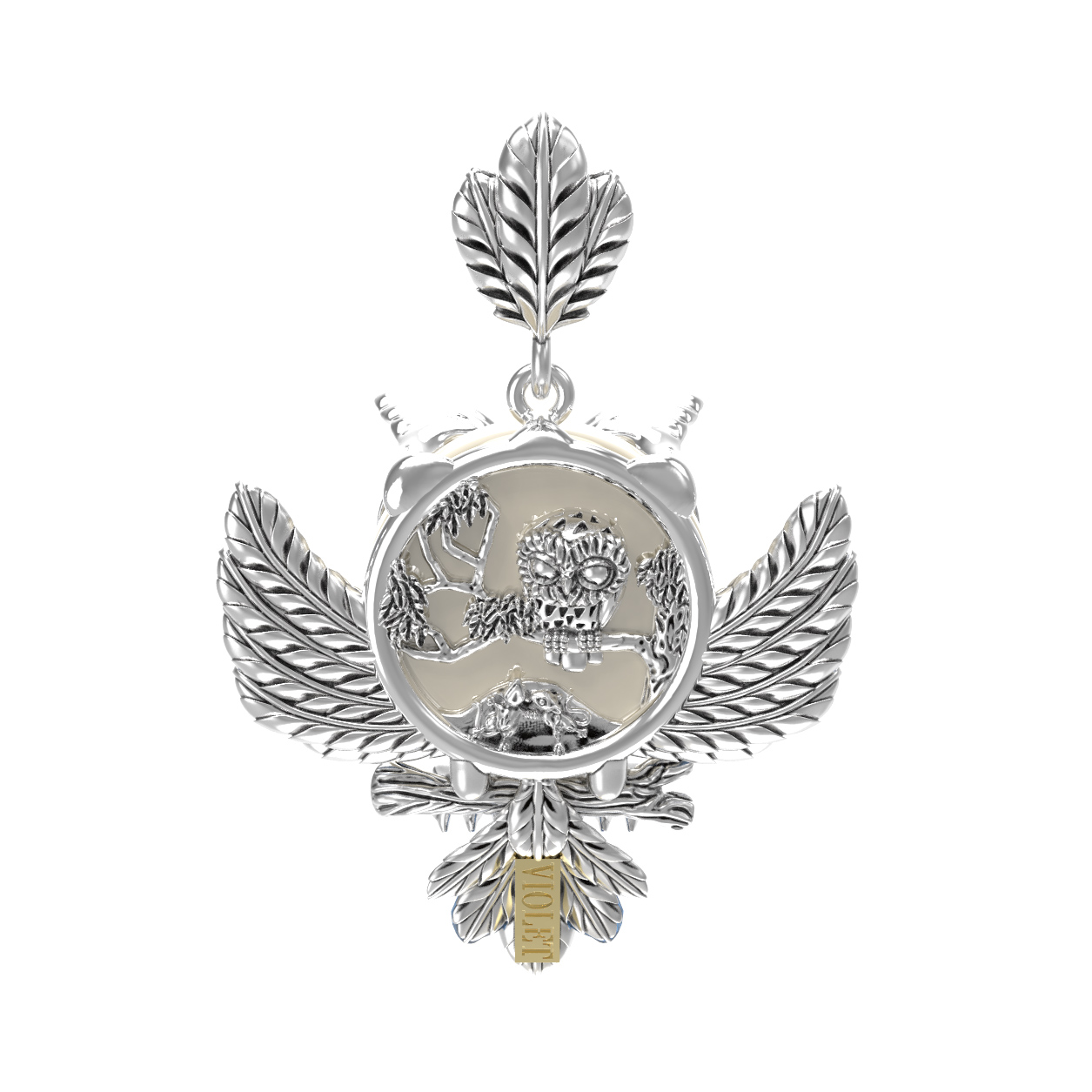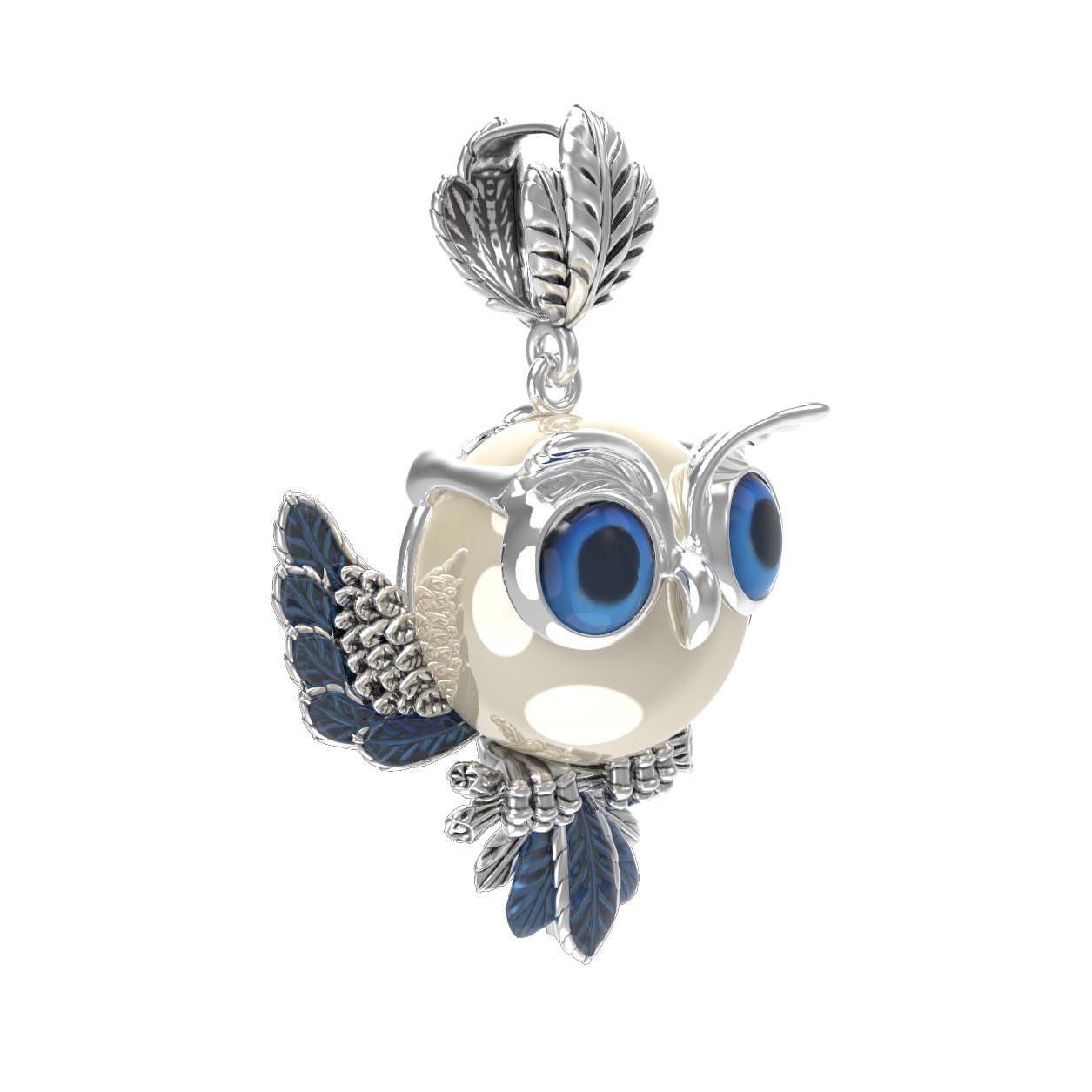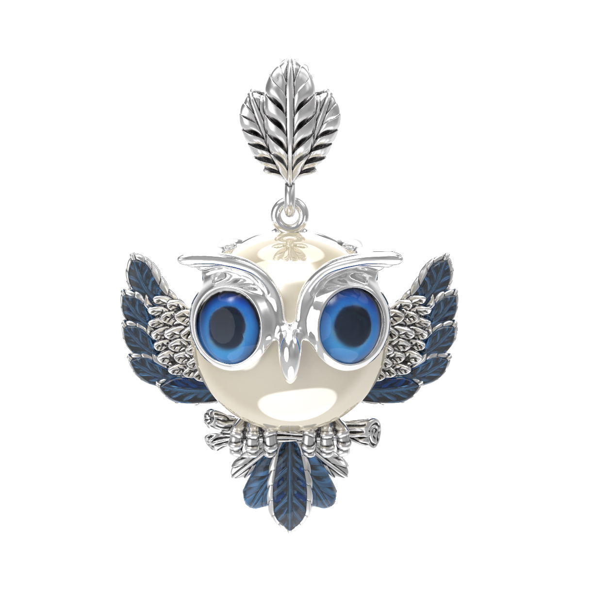 Подвеска из белого золота c эмалью и жемчугом