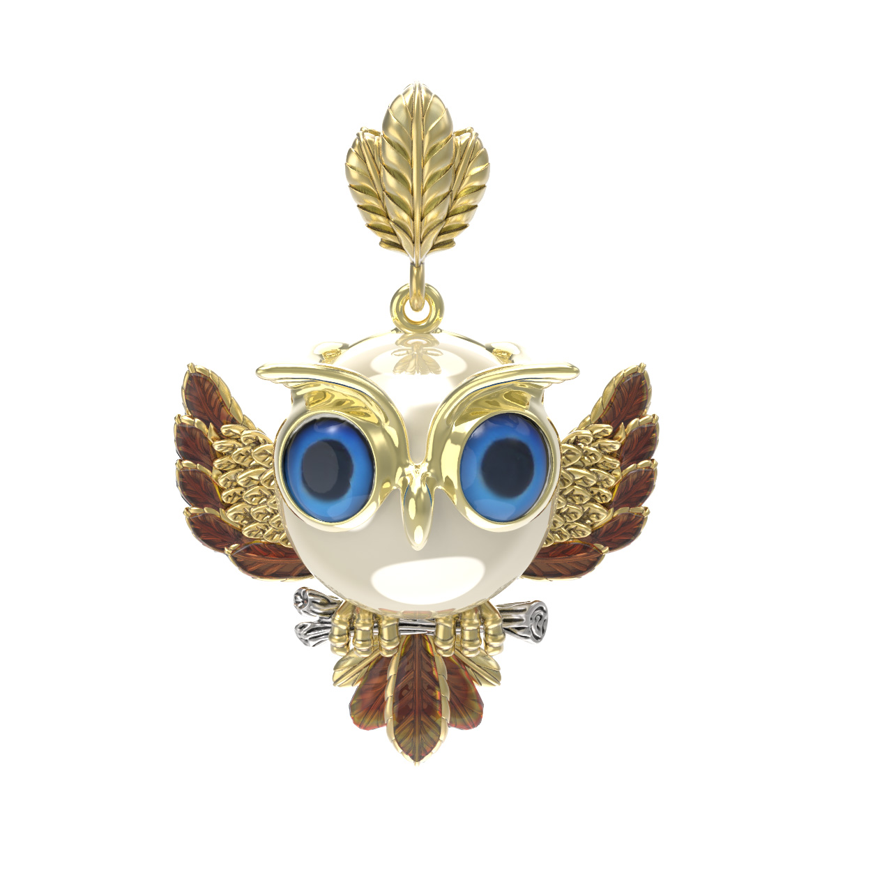 Подвеска из лимонного золота c эмалью и жемчугом