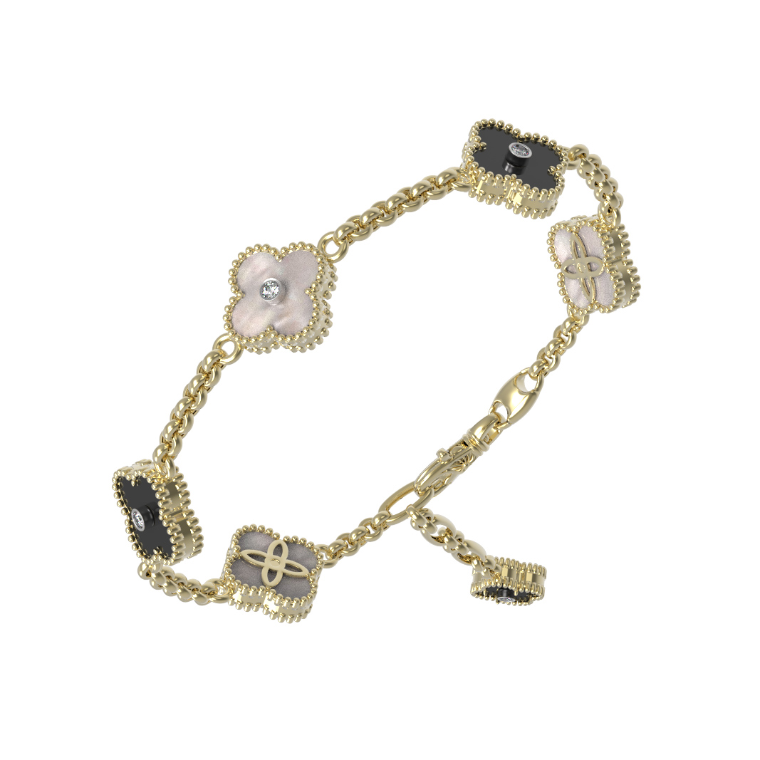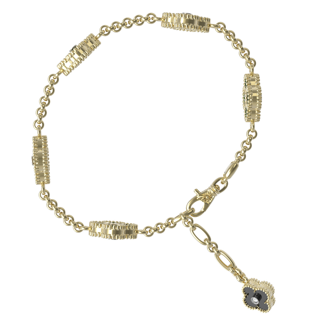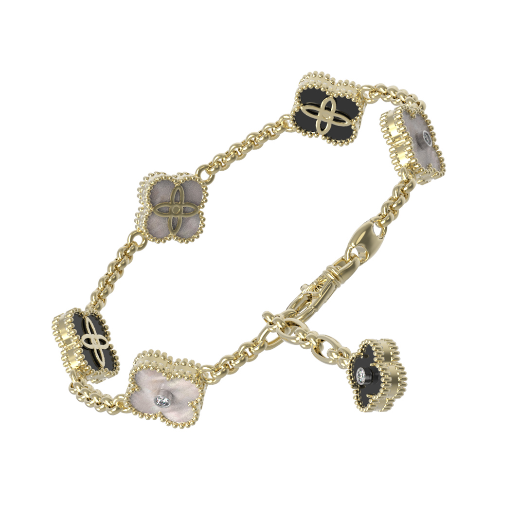 Браслет из лимонного золота c бриллиантами, ониксом и перламутром