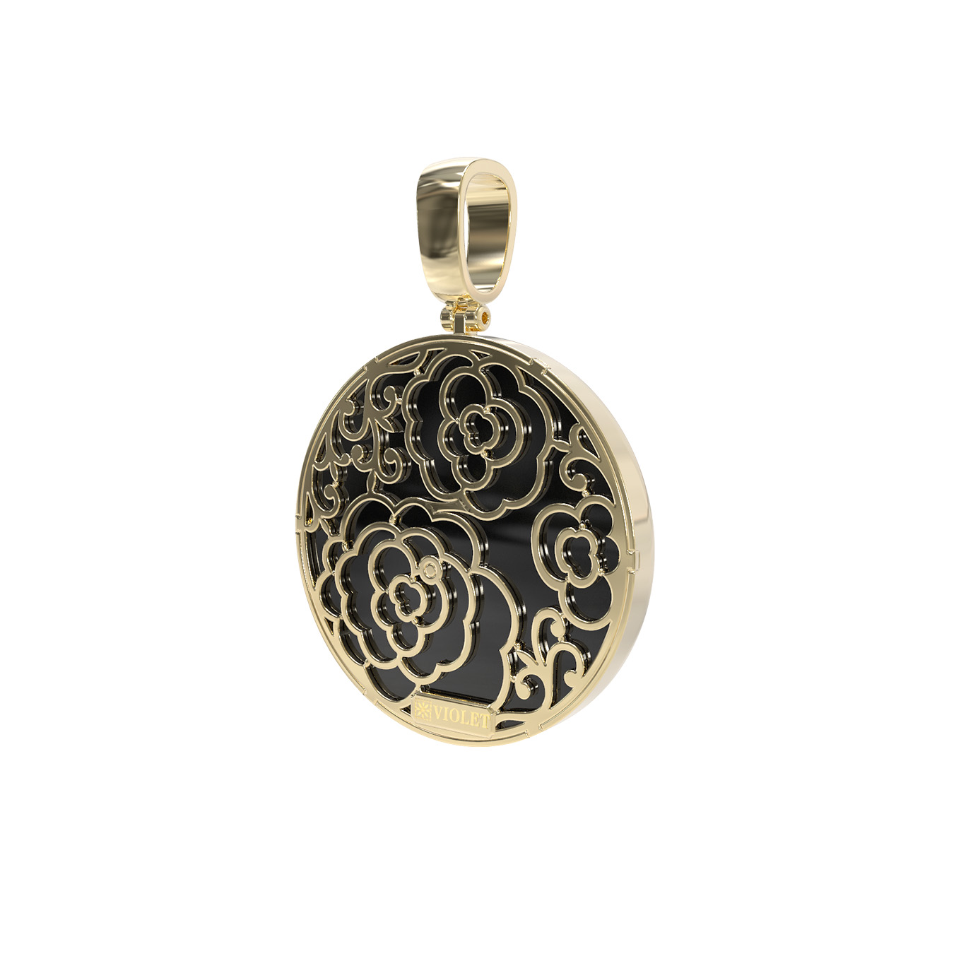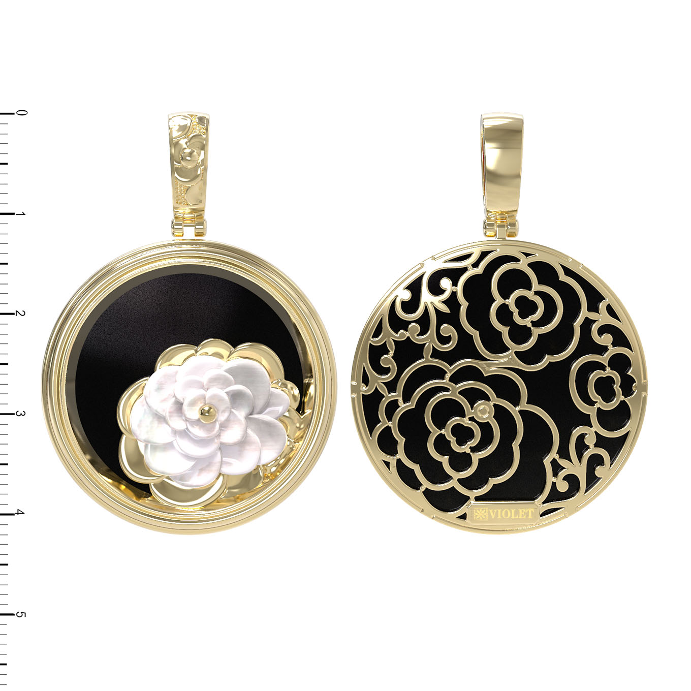 Подвеска из лимонного золота c ониксом и перламутром
