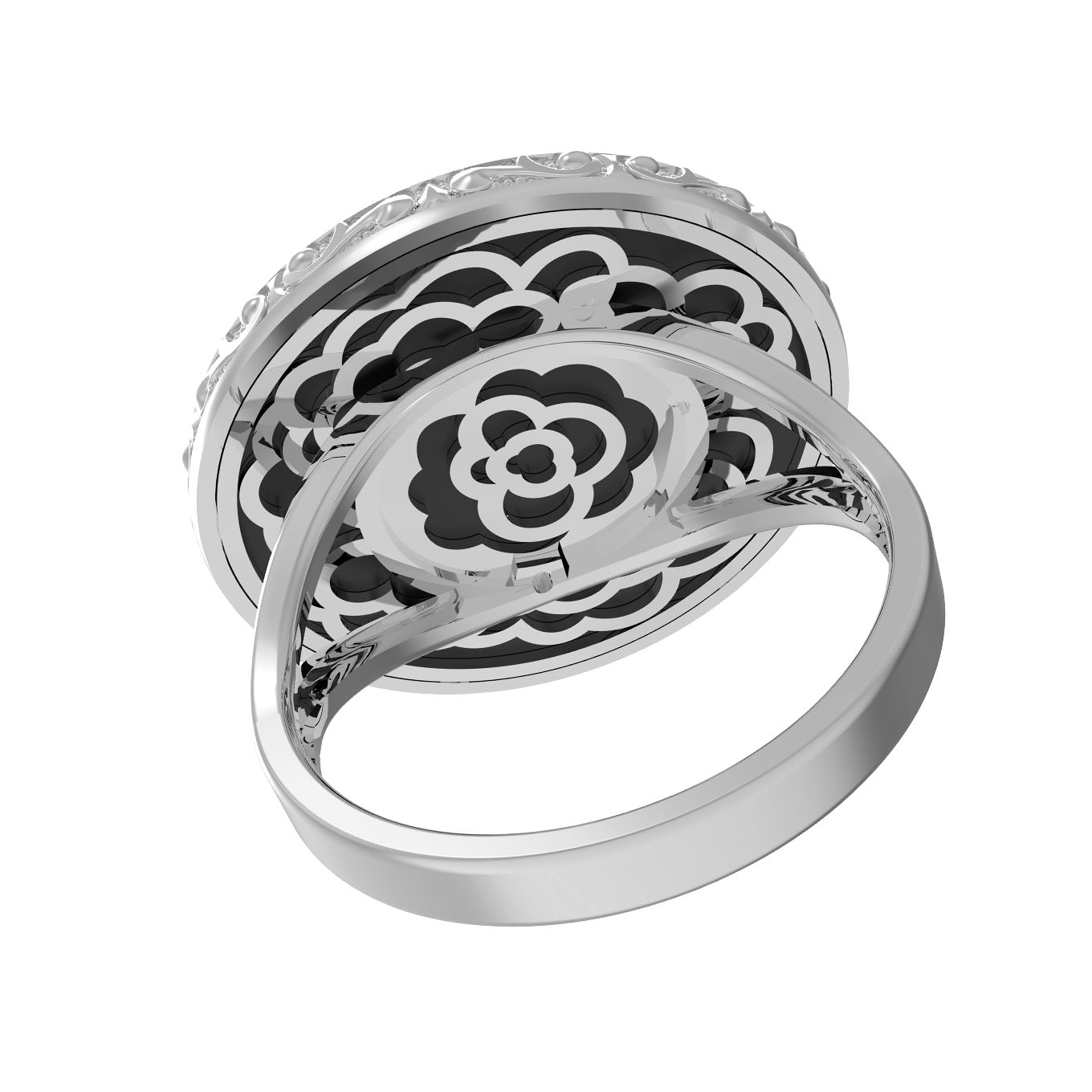 Кольцо из белого золота c ониксом и перламутром