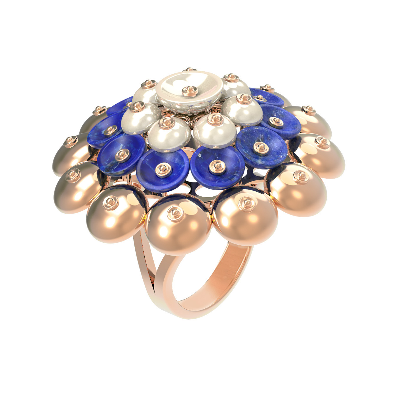Кольцо из золота c лазуритом и перламутром